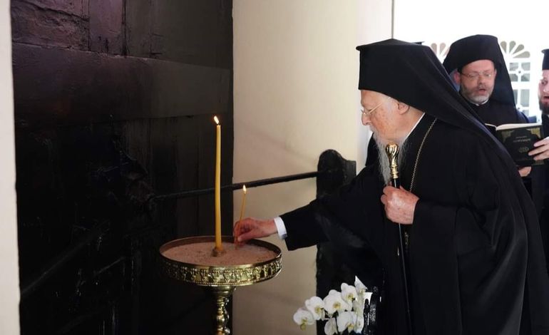 Αμέσως μετά, ο Παναγιώτατος μετέβη στην Κλειστή Πύλη του Οικουμενικού Πατριαρχείου, τόπο του απαγχονισμού του Πατριάρχου, συνοδευόμενος από κληρικούς της Πατριαρχικής Αυλής, όπου άναψε κερί, κατέθεσε ανοιξιάτικα άνθη και προσευχήθηκε υπέρ της Εκκλησίας και του Γένους, αλλά και υπέρ της επικρατήσεως της ειρήνης, της δικαιοσύνης, της αλήθειας και του σεβασμού του ανθρωπίνου προσώπου στον κόσμο, επικαλούμενος τη χάρη και τις πρεσβείες του Αγίου Προκατόχου αυτού.