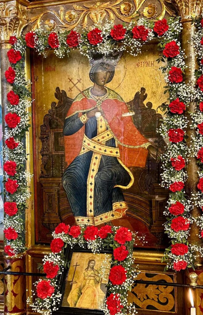 Προ του πέρατος της Θείας Λειτουργίας πραγματοποιήθηκε η λιτάνευση της ιεράς Εικόνας της Αγίας Ειρήνης και ευλογήθηκε η παραδοσιακή πανήγυρις.