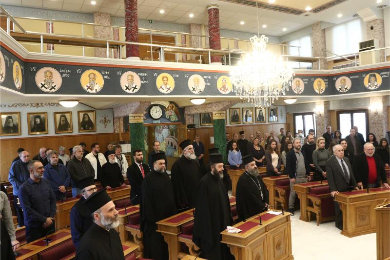 Σε αυτήν παρέστησαν ο Θεοφιλέστατος Επίσκοπος Σταυροπηγίου κ. Αλέξιος, Διευθυντής των Υπηρεσιών της Αποστολικής Διακονίας, ο Αρχιγραμματεύς της Ιεράς Συνόδου της Εκκλησίας της Ελλάδος Πανοσιολογιώτατος Αρχιμανδρίτης κ. Ιωάννης Καραμούζης, ο Γενικός Διευθυντής της Εκκλησιαστικής Κεντρικής Υπηρεσίας Οικονομικών (Ε.Κ.Υ.Ο.) Πανοσιολογιώτατος Αρχιμανδρίτης κ. Νικόδημος Φαρμάκης, ο Διευθυντής Δημοσιονομικού Ελέγχου κ. Διονύσιος Γιαννακόπουλος, κληρικοί και λαϊκοί συνοδικοί υπάλληλοι όλων των Συνοδικών Υπηρεσιών.