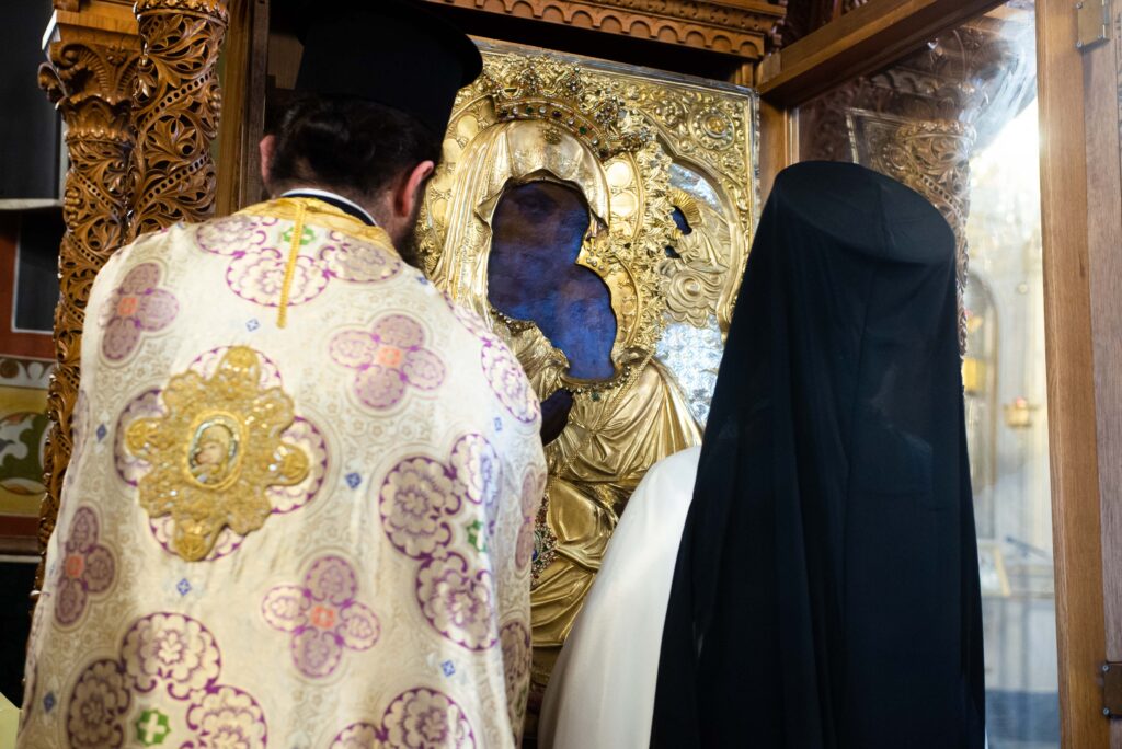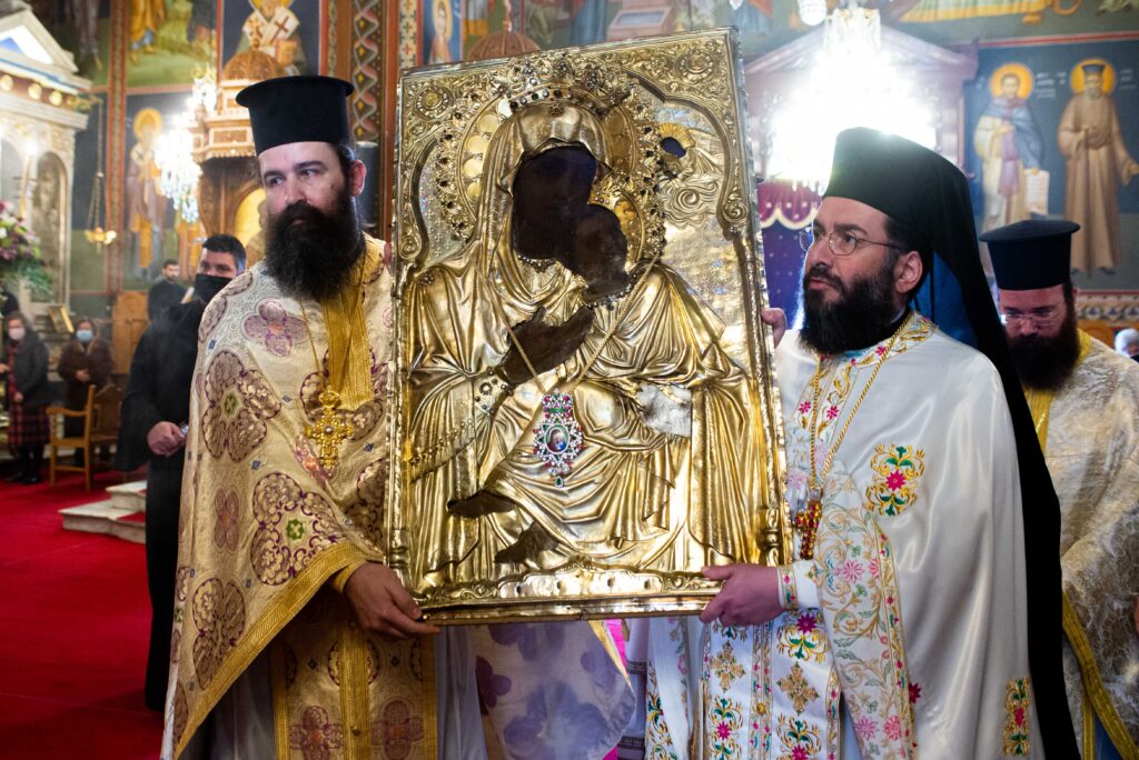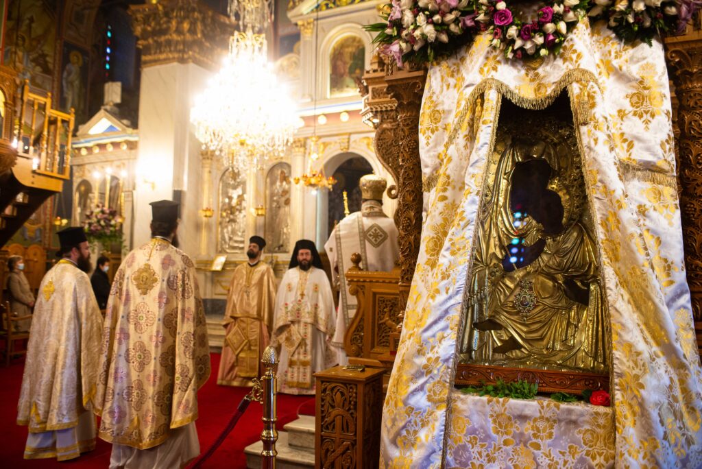 Ακολούθως τελέστηκε Ιερά Παράκληση στην Παναγία και η θαυματουργή Εικόνα της μεταφέρθηκε από το θρόνο λιτάνευσης στο μόνιμο θρόνο της.