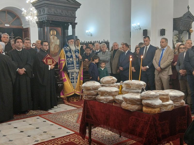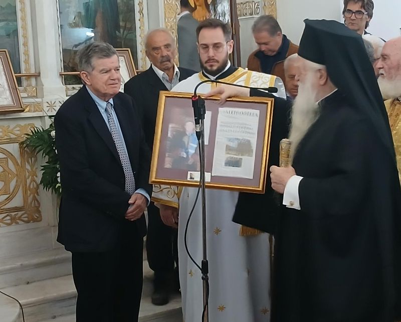 Τέλος, ο Σεβασμιώτατος Μητροπολίτης κ. Ιερώνυμος και ο Σεβασμιώτατος Μητροπολίτης κ. Αμβρόσιος προσέφεραν αναμνηστικά δώρα και ευλογίες στον κ. Μαρτίνο, ενώ προσεφέρθη ως ευλογία σε όλους τους παρευρισκομένους αντίγραφο της ιεράς εικόνος των Εισοδίων της Θεοτόκου και άλλα συμβολικά δώρα.