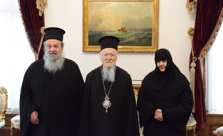 Η Α.Θ.Παναγιότης ο Πατριάρχης δέχθηκε σε ακρόαση, στις 5 Απριλίου 2022, τον Σεβ. Μητροπολίτη Δράμας κ. Παύλο, ο οποίος παρουσίασε τη νέα Ηγουμένη της Ι. Μονής Παναγίας Εικοσιφοινίσσης, Οσιωτ. Μοναχή κ. Αντωνίνη, πλαισιούμενη από Μοναχές της Αδελφότητός της.
