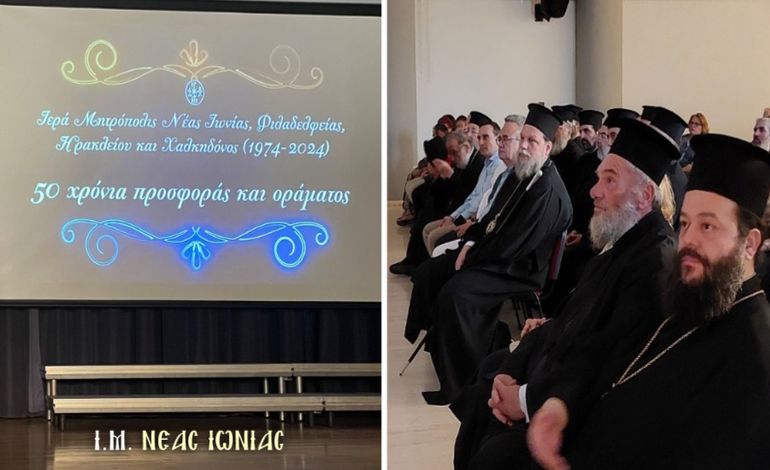 Στην κατάμεστη από πλήθος κόσμου αίθουσα του Πολιτιστικού Πολύκεντρου του Δήμου Ηρακλείου Αττικής «Ηλέκτρα Αποστόλου», πραγματοποιήθηκε την Κυριακή 16 Ιουνίου 2024 η τρίτη κατά σειρά επετειακή Εσπερίδα της Ιεράς Μητροπόλεως, Νέας Ιωνίας, Φιλαδελφείας, Ηρακλείου και Χαλκηδόνος, με αφορμή της επέτειο συμπλήρωσης 50 ετών από την ίδρυσή της (1974 – 2024).