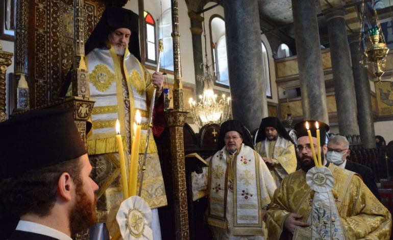 Η Α.Θ. Παναγιότης, ο Οικουμενικός Πατριάρχης κ.κ. Βαρθολομαίος, παρέστη συμπροσευχόμενος από το Ιερό Βήμα του Π. Πατριαρχικού Ναού στην Τρισαρχιερατική Θεία Λειτουργία του Σαββάτου, 9 Απριλίου 2022, προεξάρχοντος του Σεβ. Μητροπολίτου Γέροντος Χαλκηδόνος κ. Εμμανουήλ, και συλειτουργούντων των Σεβ. Μητροπολιτών Μυριοφύτου και Περιστάσεως κ. Ειρηναίου και Προύσης κ. Ιωακείμ, κατά την οποία τελέστηκε το ετήσιο Ιερό Μνημόσυνο υπέρ αναπαύσεως των ψυχών των μακαριστών Μητροπολιτών Γέροντος Νικαίας κυρού Κωνσταντίνου και Συνάδων κυρού Διονυσίου.