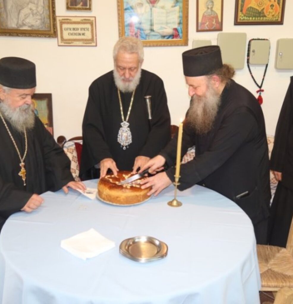 Ο Σεβασμιώτατος κ. Δωρόθεος Β’ ευχήθηκε επίσης στην Ηγουμενεύουσα της Ιεράς Μονής Ζωοδόχου Πηγής, Μοναχή Παρθενία και στον Ηγούμενο της Ιεράς Μονής Αγίου Νικολάου, Αρχιμ. Δωρόθεο.