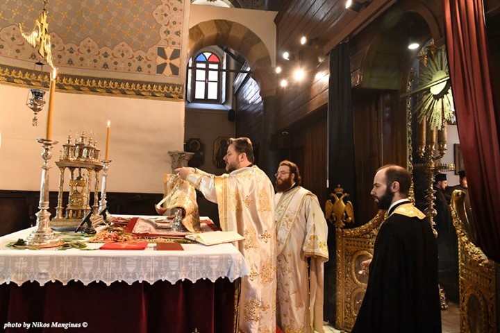 Η Θεία Λειτουργία, τελέστηκε, κατά την τάξη, από τον Αρχιμ.Ιωακείμ, και τον δ.Γρηγόριο, Αρχιγραμματέα και Υπογραμματέα, αντίστοιχα, της Αγίας και Ιεράς Συνόδου.