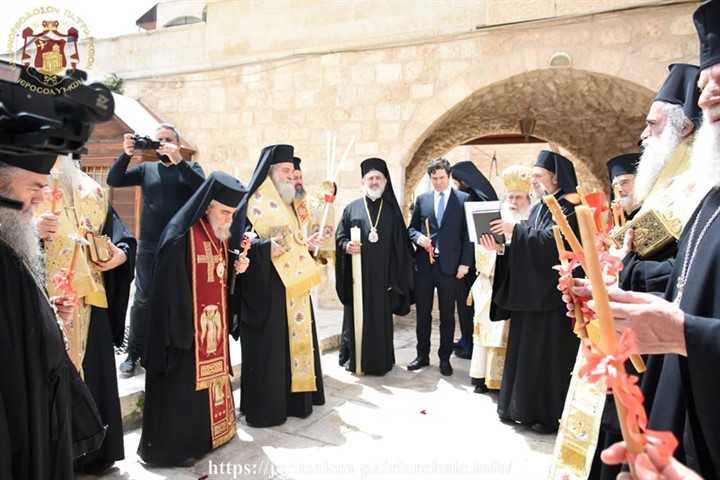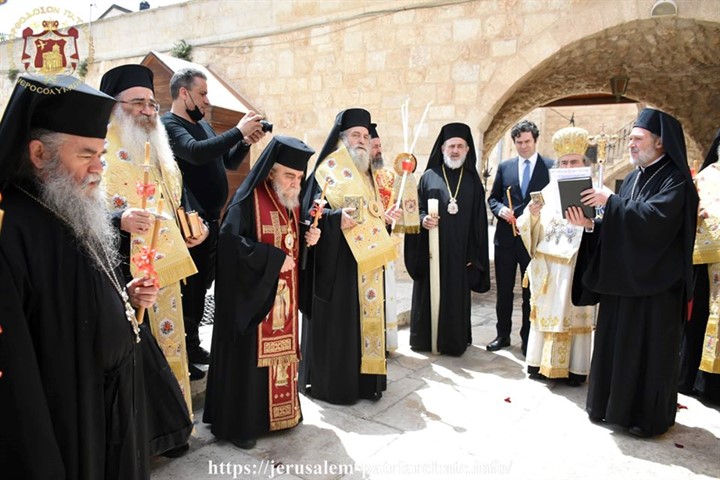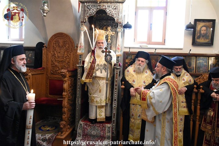 Με λαμπρότητα πραγματοποιήθηκε πριν από λίγο η Ακολουθία του Εσπερινού της Αγάπης στο Ελληνορθόδοξο Πατριαρχείο Ιεροσολύμων, παρουσία του Μακαριωτάτου Πατριάρχου κ. Θεοφίλου Γ΄.
