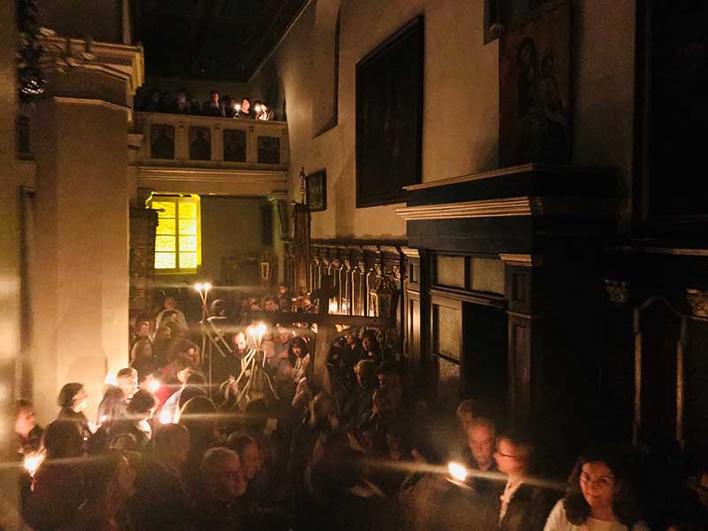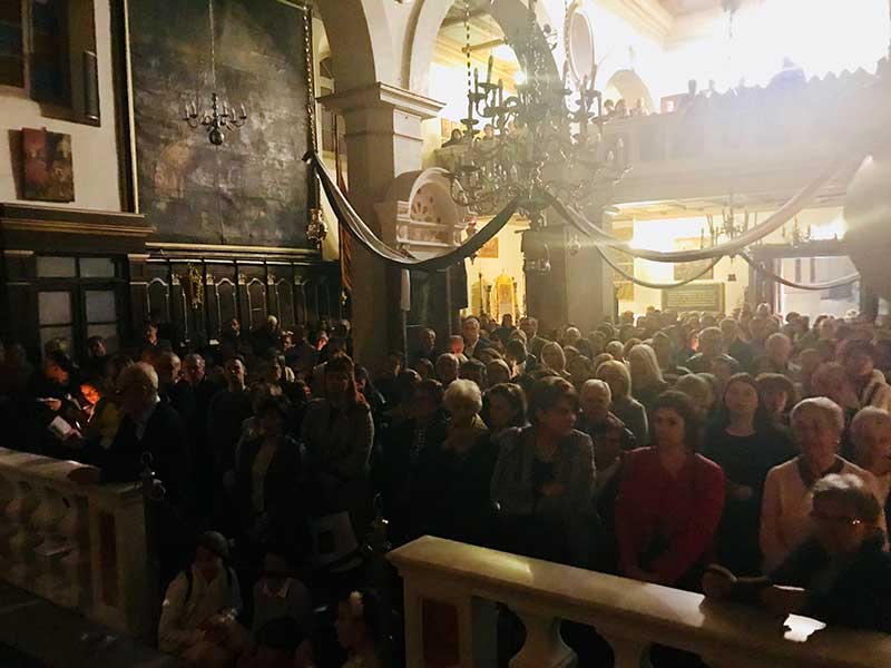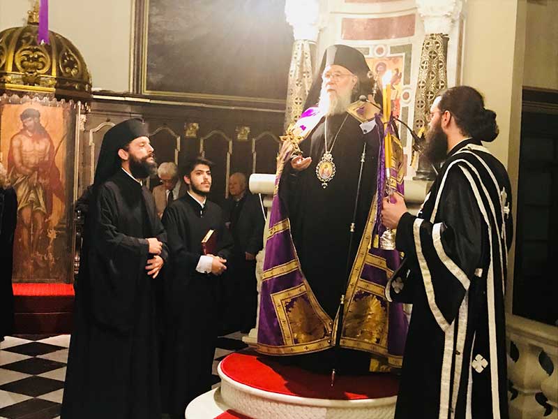 Μέσα σε συγκινησιακά φορτισμένη ατμόσφαιρα τελέστηκε το εσπέρας της Μ. Πέμπτης 25 Απριλίου 2019 η Ακολουθία των Αγίων Παθών του Κυρίου, στον Μητροπολιτικό Ναό της Υ.Θ. Σπηλαιωτίσσης, χοροστατούντος του Σεβασμιωτάτου Μητροπολίτου Κερκύρας, Παξών και Διαποντίων Νήσων κ. Νεκταρίου.