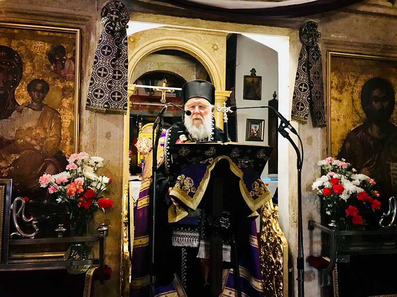 Στο κήρυγμά του ο Σεβασμιώτατος προέτρεψε τους πιστούς να ατενίσουν τον Κύριο της Δοξής, ο οποίος ανήλθε επί του Σταυρού, διά την ημών σωτηρία, κάνοντας ταυτόχρονα ο καθένας τον δικό του αυτοέλεγχο. Ο Χριστός πάντοτε έχει ανοιχτές τις χείρες Του, προσμένοντας την δική μας επιστροφή. Επαφίενται σε εμάς τα βήματα που θα κάνουμε προς Εκείνον.