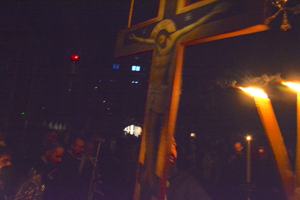 Ο Πατριαρχικός Ναός και όλο το Πατριαρχείο τυλίχθηκαν στο σκοτάδι κατά την περιφορά του Εσταυρωμένου, με τη συγκίνηση όλων να κορυφώνεται.