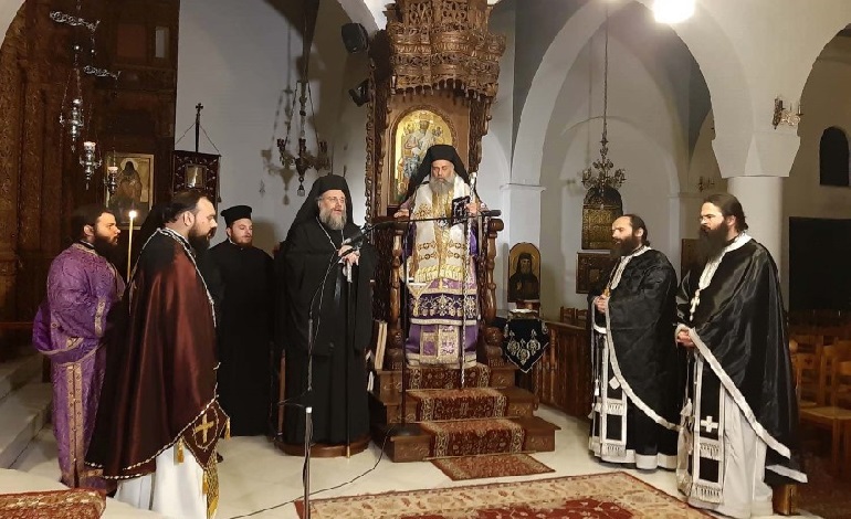 Η ακολουθία των Προηγιασμένων Τιμίων Δώρων στον Ιερό Ναό Αγίου Νεκταρίου Τρικάλων, ενώπιον των «Αχράντων Παθών»