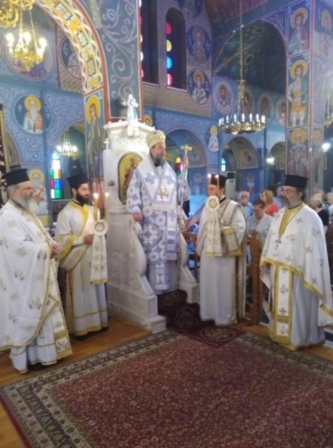 Την κυριώνυμο ημέρα της εορτής, Πέμπτη 29 Αυγούστου 2019 ο Σεβασμιώτατος Μητροπολίτης Ν. Ιωνίας και Φιλαδελφείας κ. Γαβριήλ χοροστάτησε στην ακολουθία του Όρθρου και στη συνέχεια τέλεσε την Αρχιερατική Θεία Λειτουργία με τη συμμετοχή κληρικών της Ιεράς Μητροπόλεως και την παρουσία τοπικών φορέων, εκπροσώπων πολιτιστικών συλλόγων και Μικρασιατικών σωματείων καθώς και πλήθους πιστών.