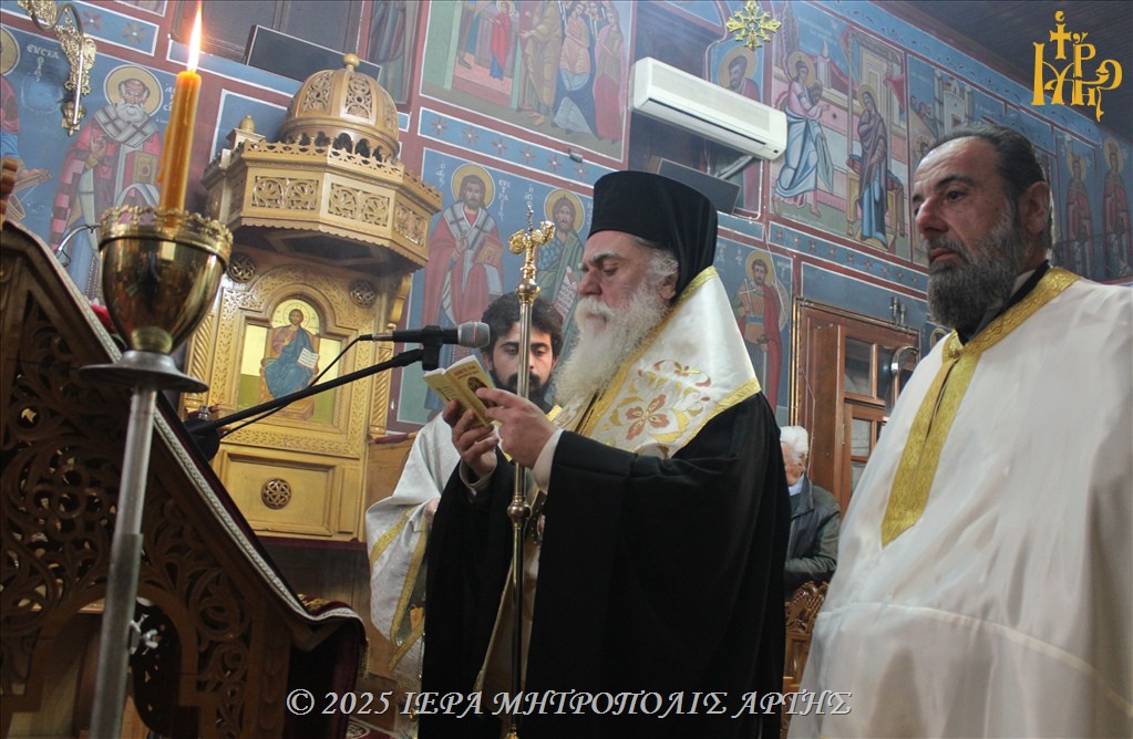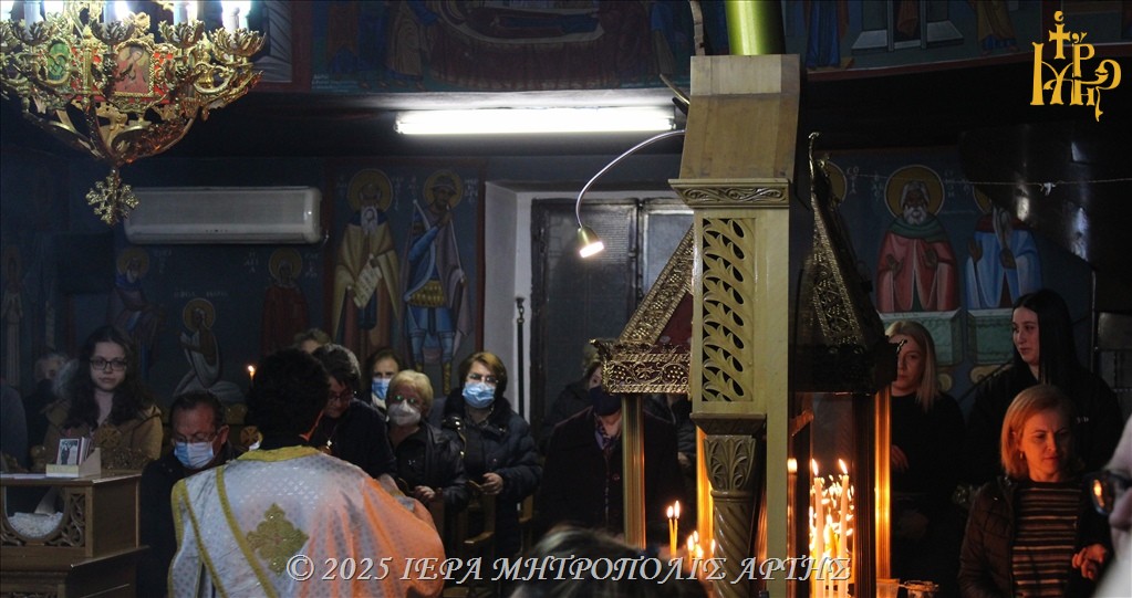 Στον Ενοριακό Ιερό Ναό του Αγίου Νικολάου, στην Λιμίνη Άρτης, την Παρασκευή 22 Μαρτίου 2025, το απόγευμα, προεξήρχε στην Ακολουθία των Γ΄ Χαιρετισμών, ο Σεβασμιώτατος Μητροπολίτης Άρτης κ. Καλλίνικος.