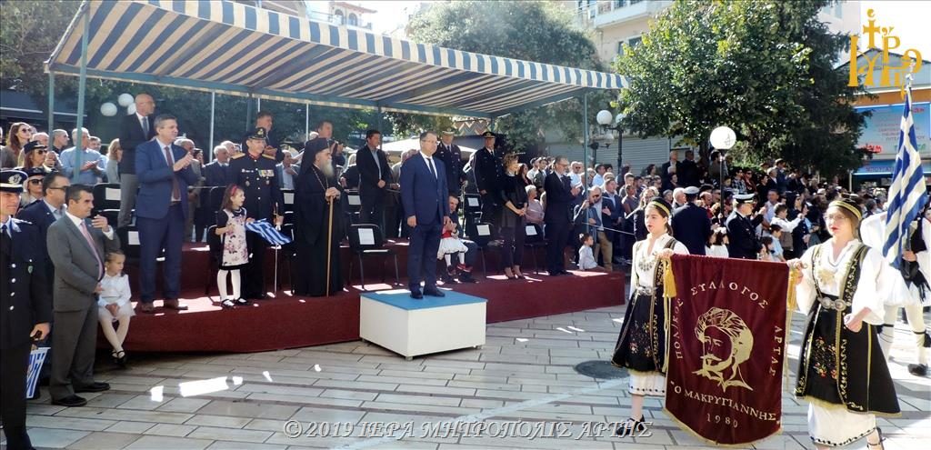 Την Δευτέρα 28η Οκτωβρίου 2019, το πρωΐ, στον Μητροπολιτικό Ιερό Ναό του Αγίου Δημητρίου Άρτης, ετελέσθη η καθιερωμένη Δοξολογία, για την Εθνική Επέτειο του «ΟΧΙ», από τον Σεβασμιώτατος Μητροπολίτη κ. Καλλίνικο, παρουσία εκπροσώπων των Αρχών και Φορέων.