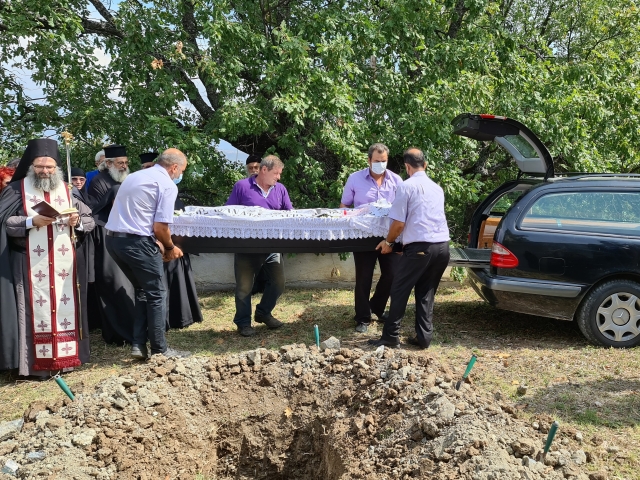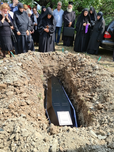 Μετά τον τελευταίο ασπασμό ο Σεβασμιώτατος τέλεσε την μοναχική επί του τάφου ακολουθία στον κοιμητήριο της Ιεράς Μονής.