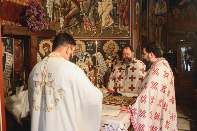 Το πρωί της κυριωνύμου τελέσθηκε ο Όρθρος και η πανηγυρική Θεία Λειτουργία προεξάρχοντος του Πρωτοσυγκέλλου της Ιεράς Μητροπόλεως Μεσσηνίας Αρχιμ. Φιλίππου Χαμαργιά, πλαισιωμένου από τον Αρχιμ. Αλέξιο Σαραντόπουλο και Αλέξιο Αρώνη.