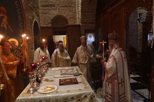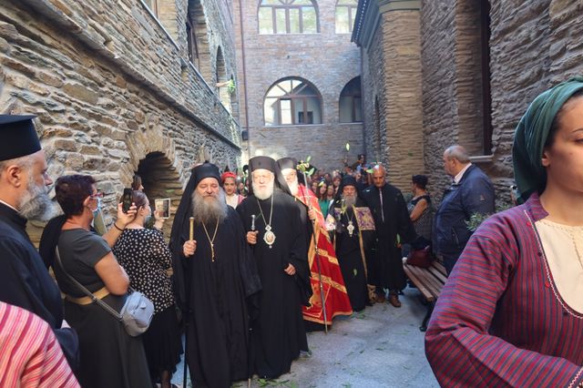Κάλεσε δε τους πολυπληθείς παρισταμένους να παραμείνουν πιστοί στις πατροπαράδοτες παραδόσεις και στο κήρυγμα του Χριστού και τη διδασκαλία της Εκκλησίας, που είναι τα μοναδικά σταθερά σημεία αναφοράς σε ένα ρευστό και διαρκώς μεταβαλλόμενο κόσμο, με ανατροπές αξιών και ιδανικών, και ευχαρίστησε τον Σεβασμιώτατο κ. Δωρόθεο Β’ για την πρόσκλησή του και τον Ηγούμενο της Μονής για τη φιλοξενία του.