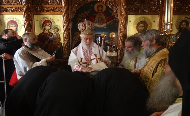 Ο Σεβασμιώτατος κ. Δωρόθεος Β’, προ του πέρατος της Θείας Λειτουργίας, κατά την οποία εχειροθέτησε τρεις Αναγνώστες, καλωσόρισε τον Σεβασμιώτατο Μητροπολίτη Βρεσθένης κ. Θεόκλητο, ευχαρίστησε και συνεχάρη τον Ηγούμενο της Μονής για τη διακονία και την μέριμνά του προς αυτήν και ευχήθηκε σε όλους τους παρισταμένους για το θέρος.