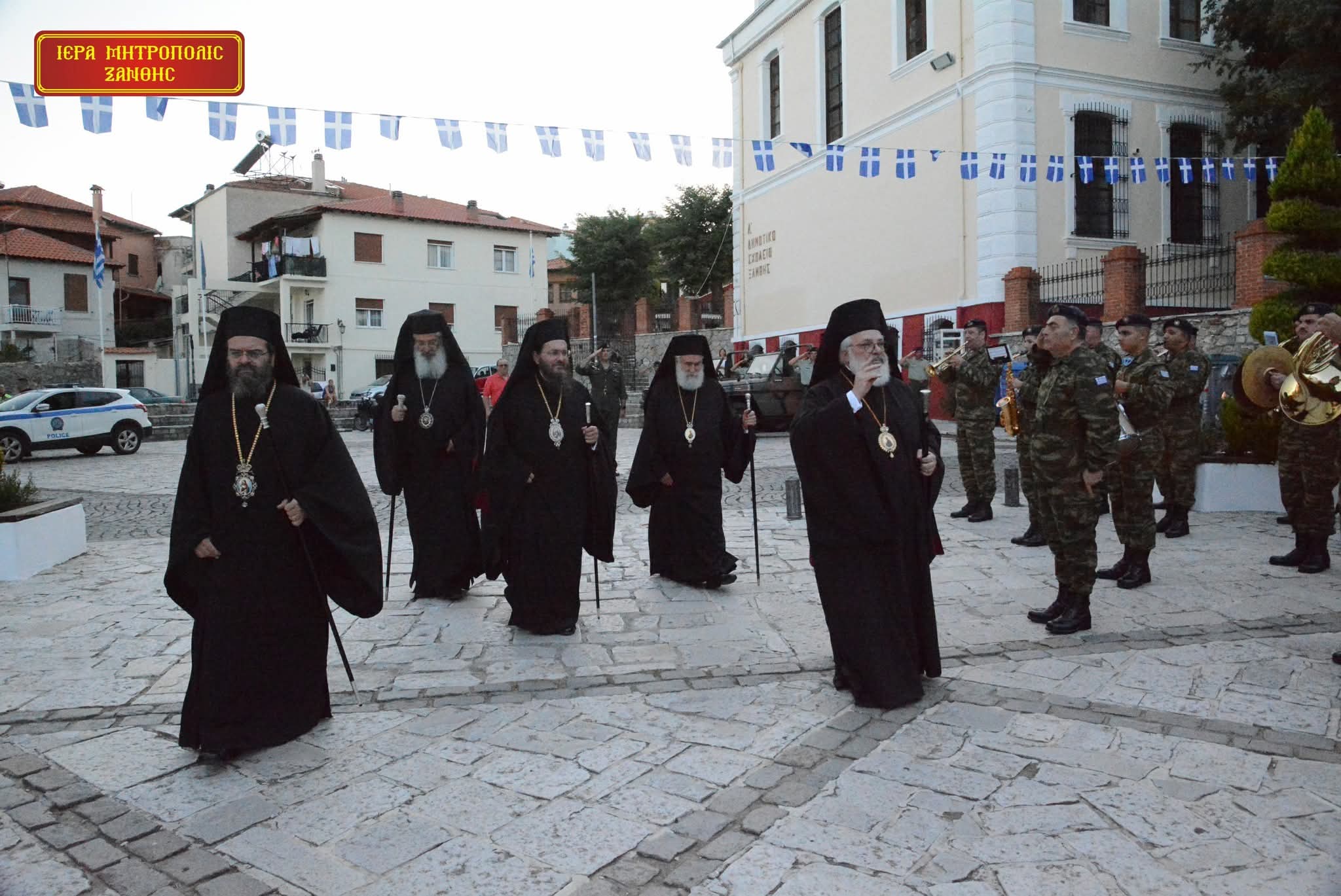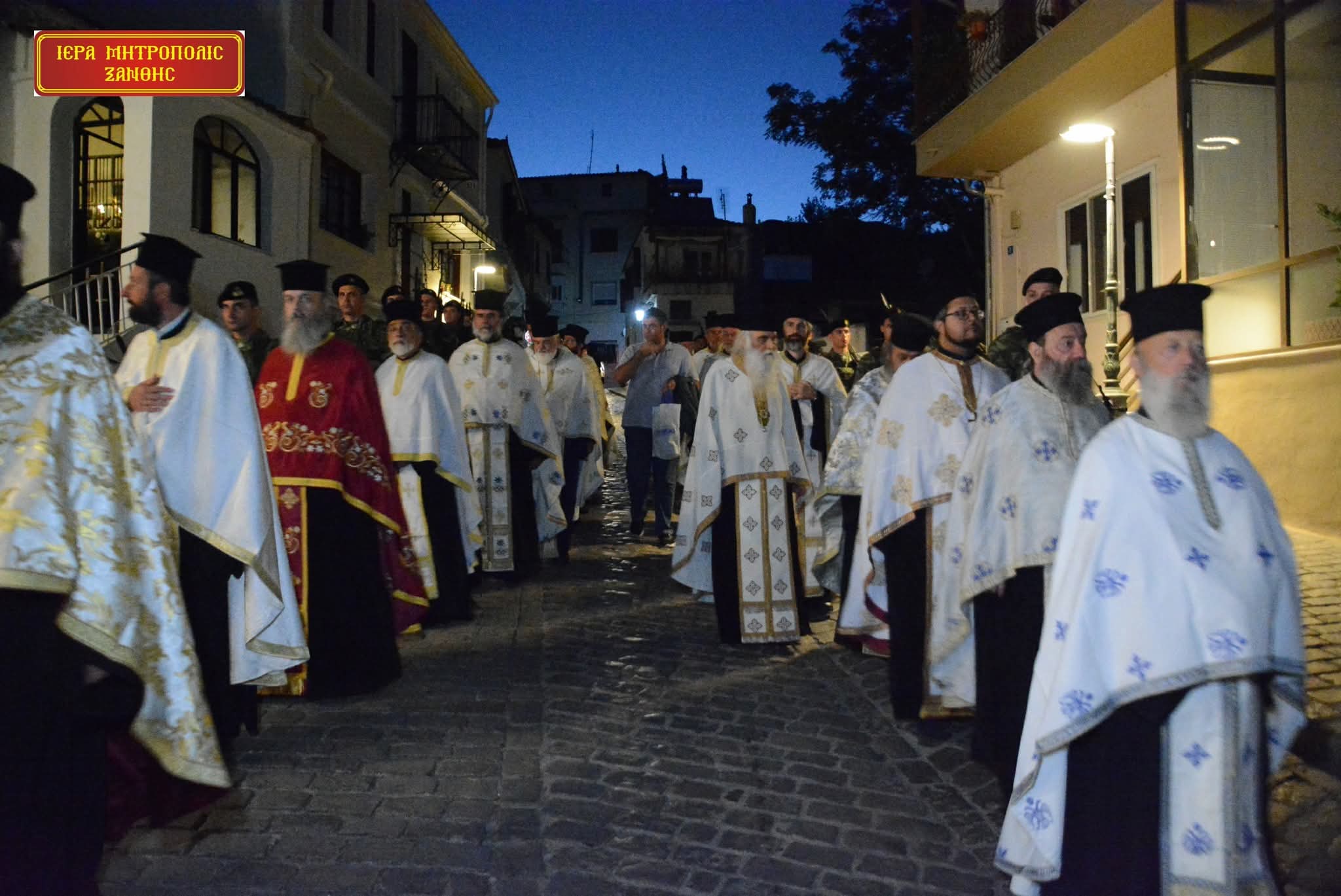 Πανηγυρικός Πολυαρχιερατικός Εσπερινός επί τη εορτή της Αποτομής της Τιμίας Κεφαλής του Τιμίου Ενδόξου Προφήτου Προδρόμου και Βαπτιστού Ιωάννου και Λιτάνευση της Ιεράς Εικόνος του, στην κεντρική πλατεία της πόλεως της Ξάνθης.