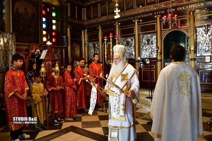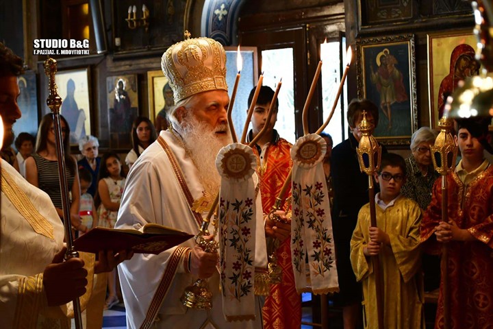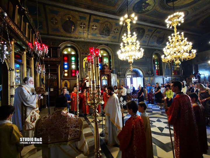 Στον ενοριακό Ιερό Ναό της Αγίας Τριάδος στην πρόνοια Ναυπλίου τελέσθηκε κατά την τάξη της Αγίας μας Εκκλησίας ο Εσπερινός της Γονυκλισίας μετά την Αρχιερατική Θεία που τέλεσε ο Μητροπολίτης Αργολίδας Νεκτάριος. Μετά την θεία λειτουργία ο εφημέριος του Ναού π. Κωνσταντίνος Σέρρος ευχαρίστησε τον Μητροπολίτη Αργολίδας για την τιμή να παρευρεθεί στην ενορία και να τελέσει την Θεία Λειτουργία. Στην Θεία Λειτουργία παρευρέθηκε προσευχόμενος στο Ιερό ο πρώην εφημέριος του Ναού π. Ιωάννης Παπαϊωάννου. Μεγάλη δεσποτική εορτή της Χριστιανοσύνης, σε ανάμνηση της επιφοίτησης του Αγίου Πνεύματος στους Αποστόλους. Γιορτάζεται πενήντα ημέρες μετά το Πάσχα, πάντα Κυριακή. Η χριστιανική Πεντηκοστή έλκει την καταγωγή της από την Εβραϊκή Πεντηκοστή (Shavuot στα Εβραϊκά), η οποία γιορτάζεται από τους Ισραηλίτες πενήντα ημέρα μετά το Εβραϊκό Πάσχα, σε ανάμνηση της ημέρας που ο Μωυσής έλαβε τις 10 εντολές από τον Θεό στο όρος Σινά. Την ημέρα αυτή πρόσφεραν στο Ναό τα πρωτογεννήματα (πρώτους καρπούς) από τον θερισμό των δημητριακών (Έξοδος λδ΄, 22 και Λευϊτικόν κγ΄, 15-25). Στον Χριστιανισμό, η Πεντηκοστή θεωρείται η γενέθλια ημέρα της Εκκλησίας. Την ημέρα αυτή έγινε η επιφοίτηση του Αγίου Πνεύματος, που επικάθησε με τη μορφή πύρινων γλωσσών πάνω από τα κεφάλια των Αποστόλων και τους φώτισε. Με το κήρυγμα του Πέτρου πίστεψαν και βαπτίστηκαν 3.000 άνθρωποι στο Χριστό. Έτσι, ιδρύθηκε η πρώτη χριστιανική εκκλησία στα Ιεροσόλυμα. (Πράξεις Αποστλων β΄, 1-41