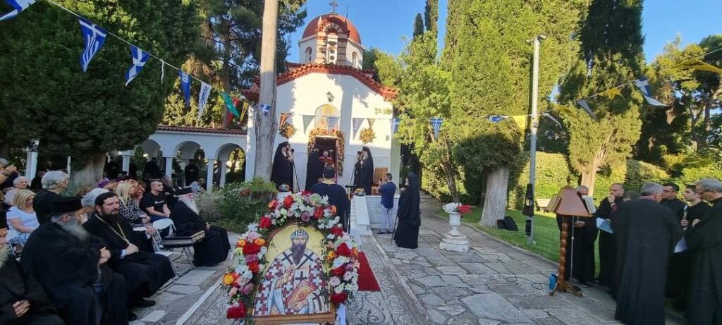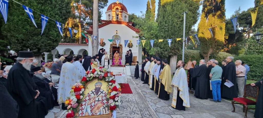 Το απόγευμα του Σαββάτου 8 Ιουνίου 2024, στο Παρεκκλήσιο του Προφήτου Ηλιού στο Επισκοπείο της Ιεράς Μητροπόλεως Κηφισίας Αμαρουσίου Ωρωπού & Μαραθώνος, τελέστηκε Μέγας Πανηγυρικός Πολυερχαρετικός Εσπερινός, στη μνήμη του Αγίου Κυρίλλου, και προς τιμήν του Σεβασμιωτάτου Μητροπολίτου και πατρός ημών Κυρίλλου, του και άγοντος τα ονομαστήριά του.