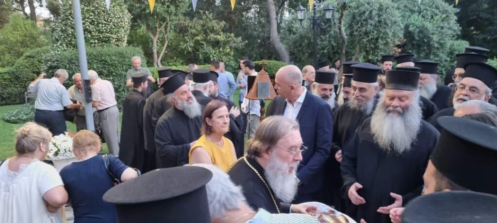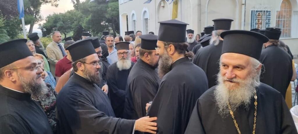 Στο τέλος ο Σεβασμιώτατος ποιμενάρχης μας κ. Κύριλλος, δέχθηκε τις ευχές για τα ονομαστήριά του, από το πλήθος των πιστών που κατέκλυσε τον προαύλιο χώρο του Επισκοπίου.