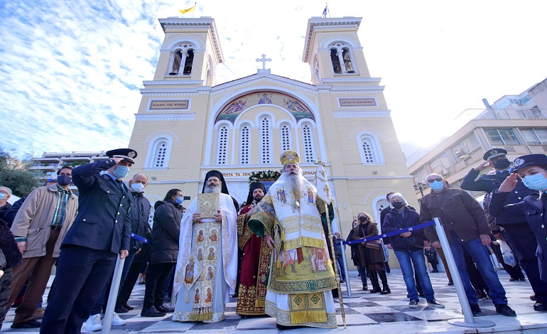 Με κάθε Εκκλησιαστική λαμπρότητα τιμήθηκε από την Ι.Μητρόπολη Πειραιώς σήμερα Κυριακή 12 Δεκεμβρίου 2021 η μνήμη του «προστάτου, εφόρου και πολιούχου της πόλεως και της Μητροπόλεώς μας, του Ιερού Σπυρίδωνος, του Αγίου της πρώτης Εκκλησίας» που έλαβε μέρος στην Α΄ Οικουμενική Σύνοδο.