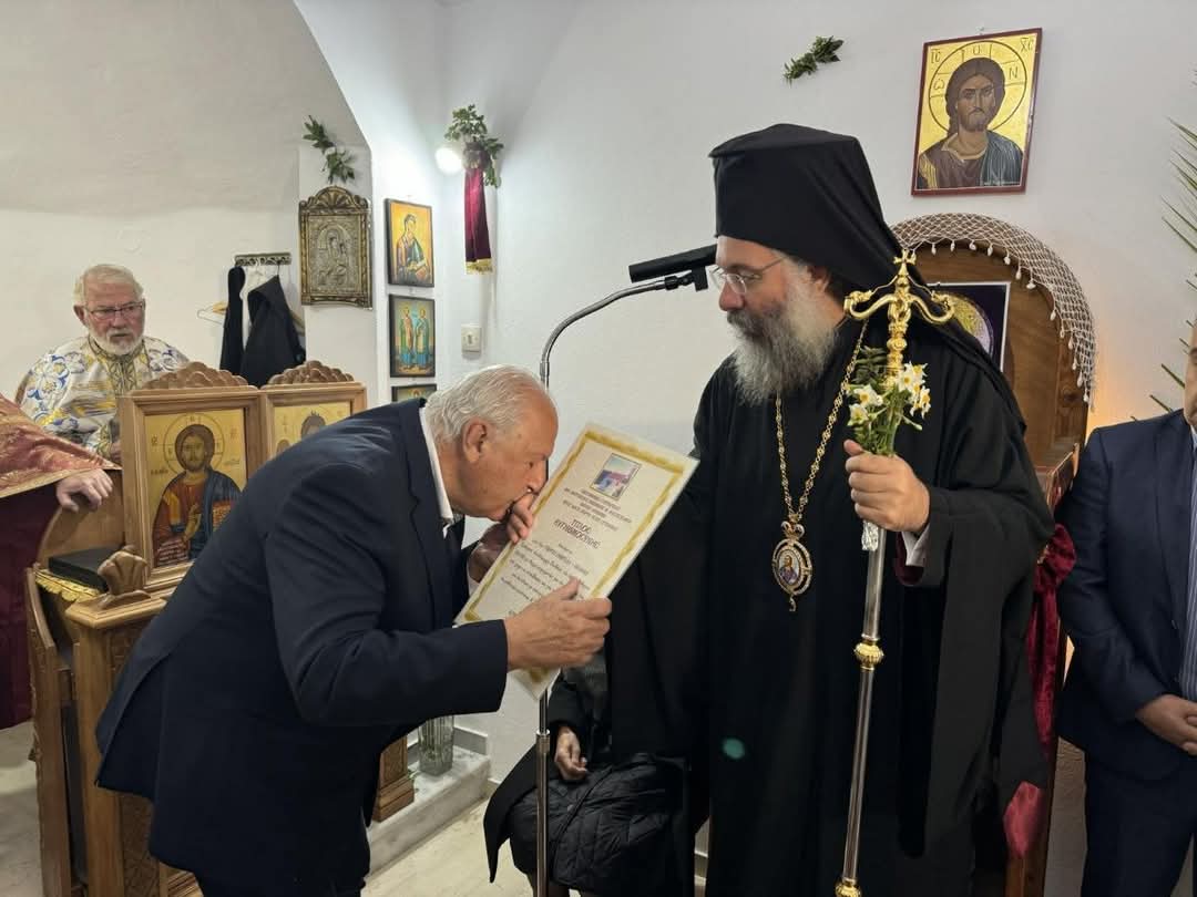 Προ της απολύσεως της Θείας Λειτουργίας, τον Σεβασμιώτατο προσφώνησε ο κτήτορας του Ιερού Ναού κ. Ιωσήφ Κολυβάκης, ο οποίος με θερμούς λόγους καλωσόρισε τον Σεβασμιώτατο και όλους τους ευλαβείς προσκυνητές, και παρεκάλεσε τον Σεβασμιώτατο να επιδώσει έπαινο στον επί σειρά ετών διατελέσαντα Αντιδήμαρχο Παιδείας του Δήμου Ρεθύμνης κ. Γεώργιο Γεωργαλή, για την πολύτιμη προσφορά του στην παιδεία στον τόπο μας.
