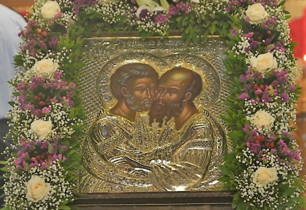 Τον θείο λόγο κήρυξε ο Σεβασμιώτατος παρουσιάζοντας την προσωπικότητα και το έργο των δύο Πρωτοκορυφαίων αποστόλων και εξαίροντας τον θείο ζήλο και την αγωνιστικότητά τους. Κατά το πέρας του Εσπερινού πραγματοποιήθηκε η λιτάνευση της ιεράς εικόνος των αγίων αποστόλων Πέτρου και Παύλου πέριξ του ιερού ναού.