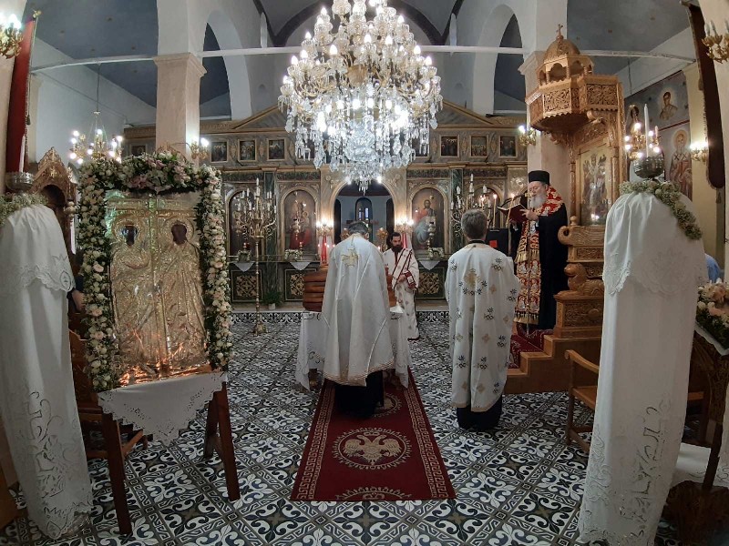 Το πρωί της Πέμπτης 21 Μαΐου 2020 χοροστάτησε κατά την Ακολουθία του Όρθρου, προεξήρχε της Θείας Λειτουργίας και κήρυξε τον θείο λόγο στο πανηγυρίζον Ι. Παρεκκλήσιο των Αγίων Κωνσταντίνου και Ελένης της Ενορίας Οσ. Ιωάννου Ρώσσου Βασιλικού, συλλειτουργούντων του Ιεροκήρυκος Αρχιμ. Νεκταρίου Ευγενικού, του εορτάζοντος Εφημερίου της Ενορίας Πρωτοπρεσβ. Κωνσταντίνου Λοβέρδου και του Διακ. Νικολάου Πριμηκυρίου.