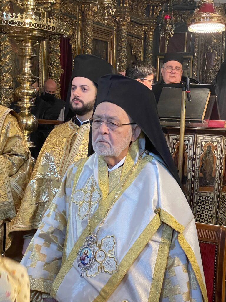 Στη Θεία Λειτουργία που τελέστηκε σήμερα, Σάββατο, 25 Δεκεμβρίου 2021, στον πάνσεπτο Πατριαρχικό Ναό, προεξήρχε η Α. Σεβασμιότης ο Πατριαρχικός Επίτροπος Μητροπολίτης Γέρων Χαλκηδόνος κ. Εμμανουήλ και συλλειτούργησαν οι Σεβ. Μητροπολίτες Φιλαδελφείας κ. Μελίτων, Μυριοφύτου και Περιστάσεως κ. Ειρηναίος, Μύρων κ. Χρυσόστομος και Προύσης κ. Ιωακείμ.