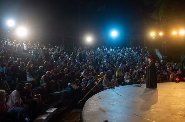 Στο κατάμεστο από κόσμο αμφιθέατρο του Κάστρου της Καλαμάτας, πραγματοποιήθηκε, το βράδυ της Κυριακής 28 Αυγούστου, η θεατρική παράσταση με τίτλο “Στάχτη στο μελτέμι της Ιωνίας γης”. Η παράσταση διοργανώθηκε από την Ενορία της Αναλήψεως του Χριστού Καλαμάτας σε συνεργασία με την θεατρική ομάδα “Συν… αίσθημα” και τελούσε υπό την αιγίδα της Ιεράς Μητροπόλεως Μεσσηνίας. Προ της ενάρξεως έλαβε τον λόγο ο Σεβασμιώτατος Μητροπολίτης Μεσσηνίας κ. Χρυσόστομος ο οποίος αναφέρθηκε στην θλιβερή επέτειο της συμπλήρωσης εκατό ετών από την γενοκτονία του Μικρασιατικού Ελληνισμού, όπως χαρακτηριστικά είπε. Εν συνεχεία ευχαρίστησε τους διοργανωτές και συγκεκριμένα τον σκηνοθέτη κ. Στέλιο Καλαθά και όλη την ομάδα του αλλά και τον προϊστάμενο της ενορίας της Αναλήψεως Καλαμάτας Αρχιμ. Αλέξιο Σαραντόπουλο και τον Πρωτοσύγκελλο της Ιεράς Μητροπόλεως Μεσσηνίας Αρχιμ. Φίλιππο Χαμαργιά για την άψογη συνεργασία κατά την διοργάνωση. Τέλος ευχαρίστησε όλους όσους κατέκλυσαν το χώρο του αμφιθεάτρου και τους παριστάμενους άρχοντες του τόπου, τον τ. Υπουργό και Βουλευτή κ. Ιω. Λαμπρόπουλο, τον Δήμαρχο Καλαμάτας κ. Αθ. Βασιλόπουλο ο οποίος επίσης απηύθυνε σύντομο χαιρετισμό, τον Πρόεδρο της Κοινότητας Καλαμάτας κ. Π. Λύρα, την Πρόεδρο του Λυκείου Ελληνίδων Καλαμάτας κ. Τζίνα Καρέλια και τον Αστυνομικό Διευθυντή Μεσσηνίας κ. Ηλία Αξιοτόπουλο.