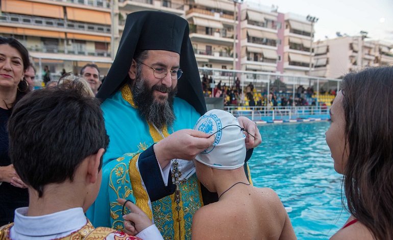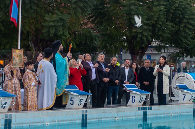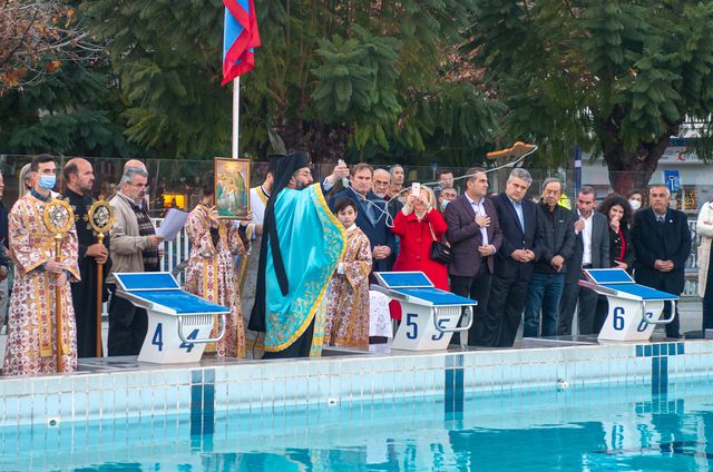 Με την παρουσία πλήθους πιστών και τη συμμετοχή μαθητών και μαθητριών, από τις ομάδες του Ναυτικού Ομίλου Καλαμάτας (ΝΟΚ) και της ΠΑΕ «Ο ΑΡΓΗΣ», τελέσθηκε το απόγευμα της Πέμπτης 5 Ιανουαρίου, ο καθιερωμένος Αγιασμός των υδάτων και η Κατάδυση του Τιμίου Σταυρού, στο Δημοτικό Κολυμβητήριο Καλαμάτας. Της τελετής και της Καταδύσεως προηγήθηκε η τέλεση του Μεγάλου Εσπερινού της εορτής των Θεοφανείων, στον Ιερό Προσκυνηματικό Ναό της Αγίας Βαρβάρας, πλησίον του Κολυμβητηρίου, προεξάρχοντος του Πρωτοσυγκέλλου της Ιεράς Μητροπόλεως Μεσσηνίας Αρχιμ. Φιλίππου Χαμαργιά.