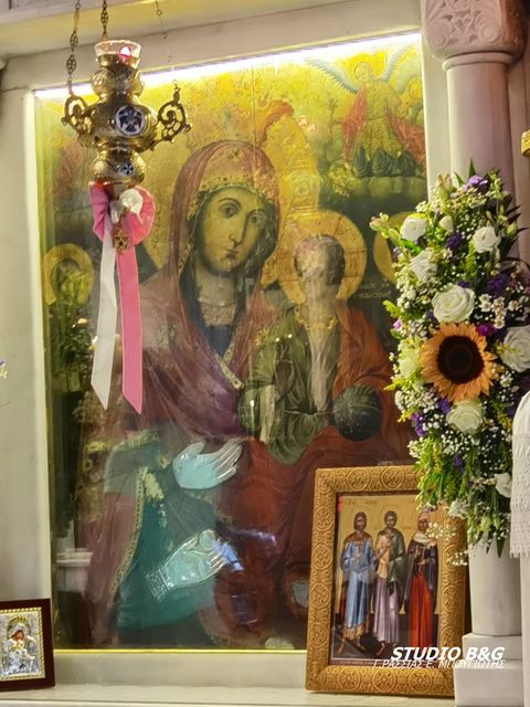 Οι κάτοικοι στη Νέα Κίο Αργολίδας τιμούν με κάθε λαμπρότητα την Παναγία, την επονομαζόμενη “Τριχερούσα”, η οποία έχει μεταφερθεί από την Παλαιά Κίο της Μικράς Ασίας και φυλάσσεται στον Ενοριακό Ιερό Ναό “Θεομάνας” Νέας Κίου. Την παραμονή της εορτής, Τρίτη 11 Ιουλίου 2023 , εψάλη Μέγας Πανηγυρικός Εσπερινός μετ’ Αρτοκλασίας και Θείου Κηρύγματος, ιερουργούντος του Ιεροκήρυκα της Μητροπόλεως Αργολίδας Αρχιμανδρίτη Λεόντειο Ξηνταρόπουλου .