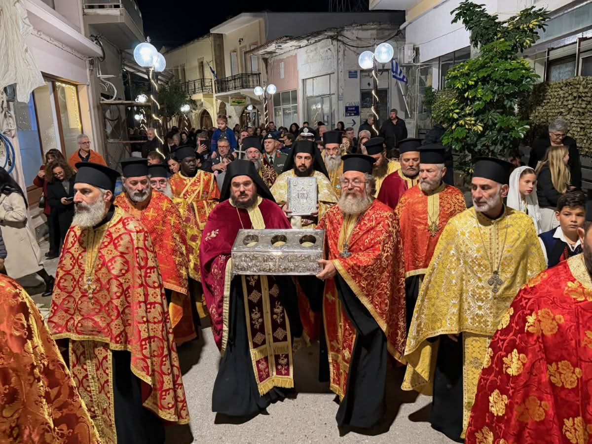 Προσκεκλημένος του Σεβ. Μητροπολίτου Κισάμου και Σελίνου κ. Αμφιλοχίου, ο Σεβ. Μητροπολίτης Ρεθύμνης και Αυλοποτάμου κ. Πρόδρομος, κόμισε τις Τίμιες Κάρες των Αγίων Τεσσάρων Μαρτύρων, προς ευλογία και αγιασμό.
