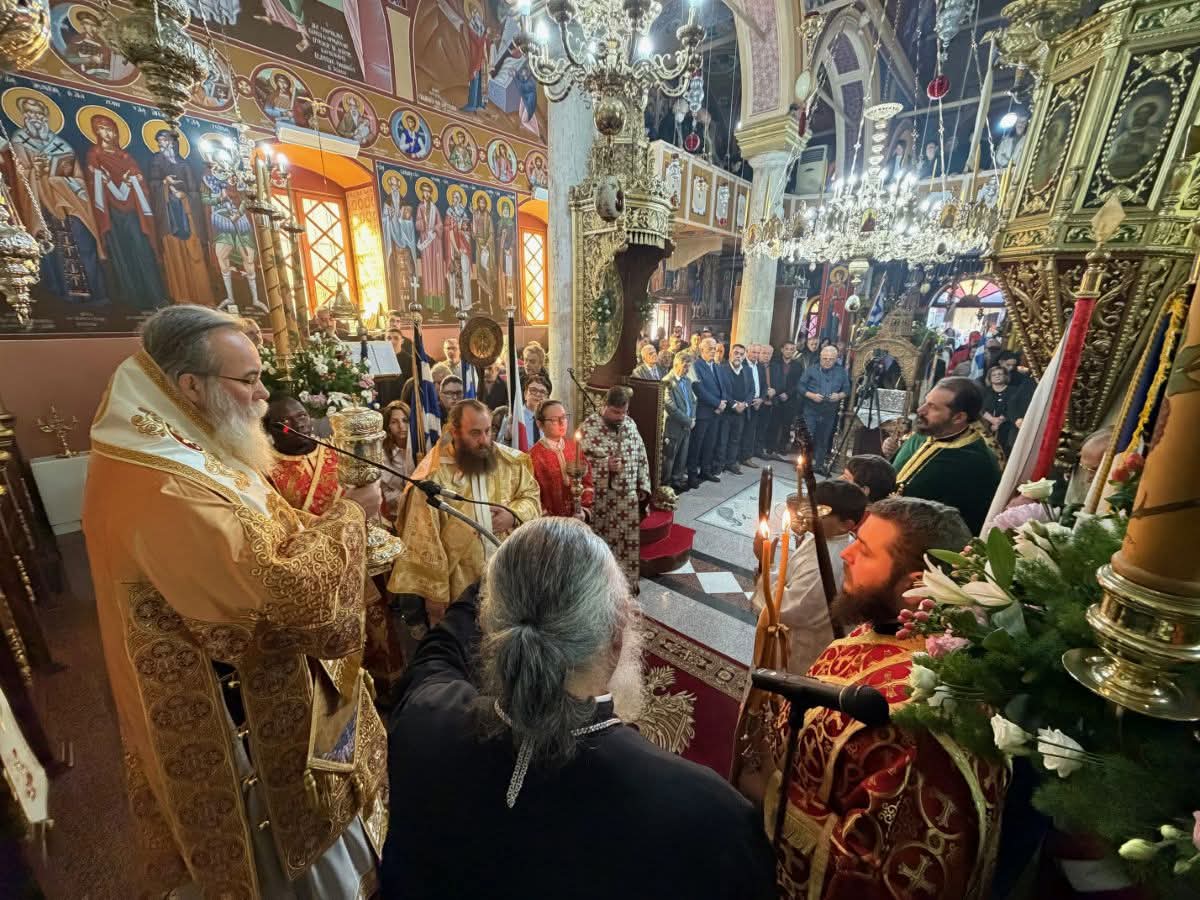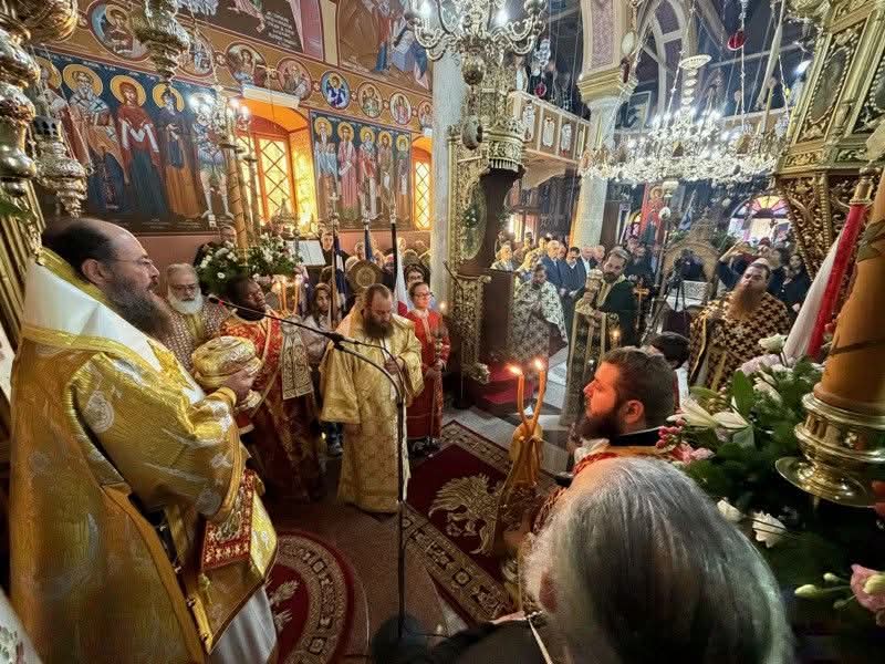 Της πανηγυρικής Θείας Λειτουργίας προεξήρχε ο Σεβ. Μητροπολίτης Πέτρας και Χερρονήσου κ. Γεράσιμος, συλλειτουργούντων των Σεβ. Μητροπολιτών Ρεθύμνης και Αυλοποτάμου κ. Προδρόμου και του Ποιμενάρχου κ. Αμφιλοχίου.