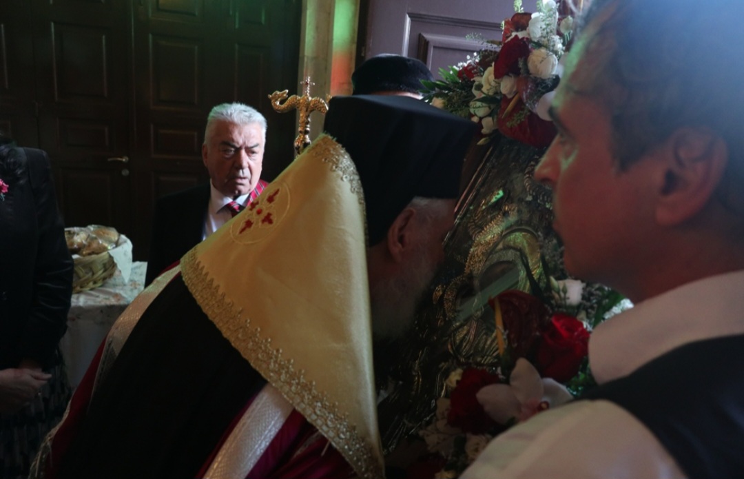 Προ του πέρατος της Ακολουθίας, ο Σεβσσμιώτατος κ. Δωρόθεος Β’ επεσήμανε τον συμβολισμό της ελεύσεως της Αγίας Εικόνος στην Ερμούπολη, η οποία εορτάζει την 200ή επέτειο από την ονοματοδοσία της, υπογράμμισε ότι η προσφυγιά και οι περιπέτειες Εικόνος εκφράζουν τις περιπέτειες και τον πόνο της προσφυγιάς των οικιστών και ιδρυτών Ερμούπολης και τόνισε ότι με παρουσία Της στην Ερμούπολη και τη Σύρο, η Παναγία μας υπενθυμίζει ότι ποτέ δεν θα μας εγκαταλείψει ως άτομα και ως έθνος.