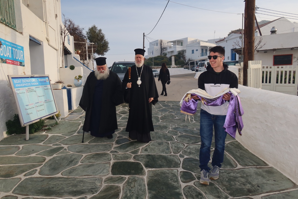 Προ του πέρατος της Ακολουθίας, η οποία μαγνητοσκοπήθηκε και θα μεταδοθεί το εσπέρας, ώρα 7, από τον Περιφερειακό Τηλεοπτικό Σταθμό “SYROS TV1” , o Σεβασμιώτατος κ. Δωρόθεος Β΄ απένειμε το οφίκιο του Πρωτοπρεσβυτέρου στον Εφημέριο του Ναού και Αρχιερατικό Επίτροπο Φολεγάνδρου Οικον. Κωνσταντίνο Χαρούλη.