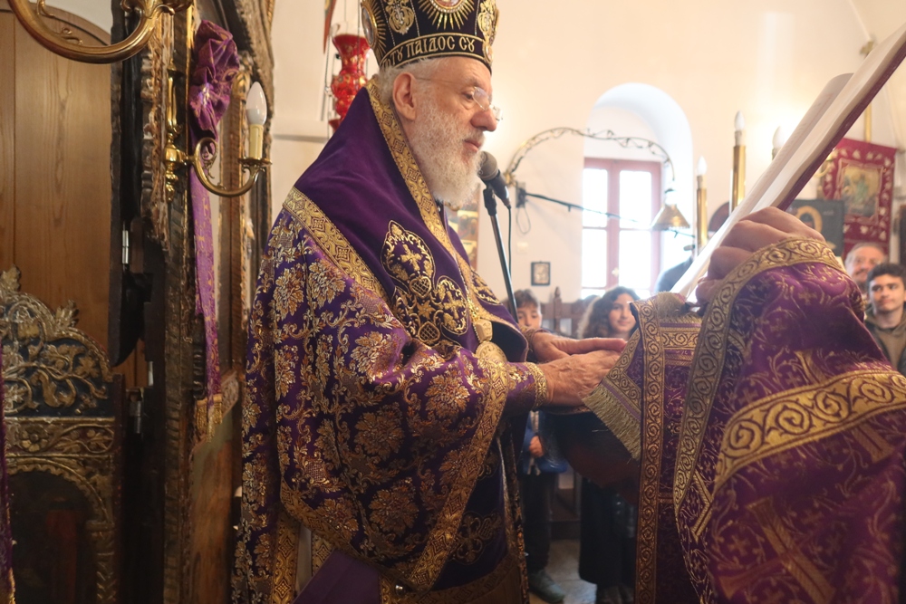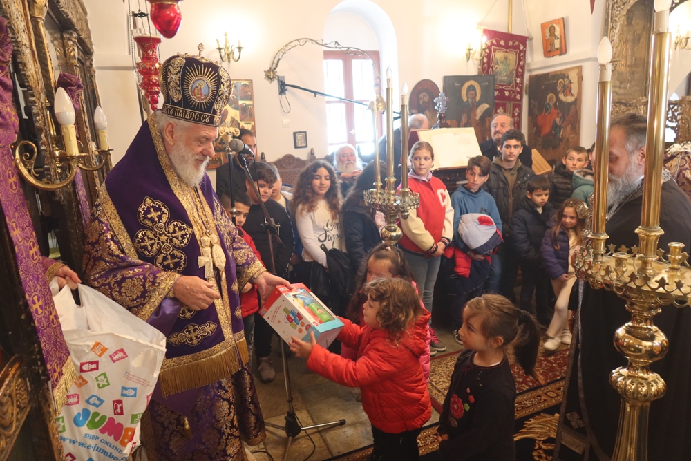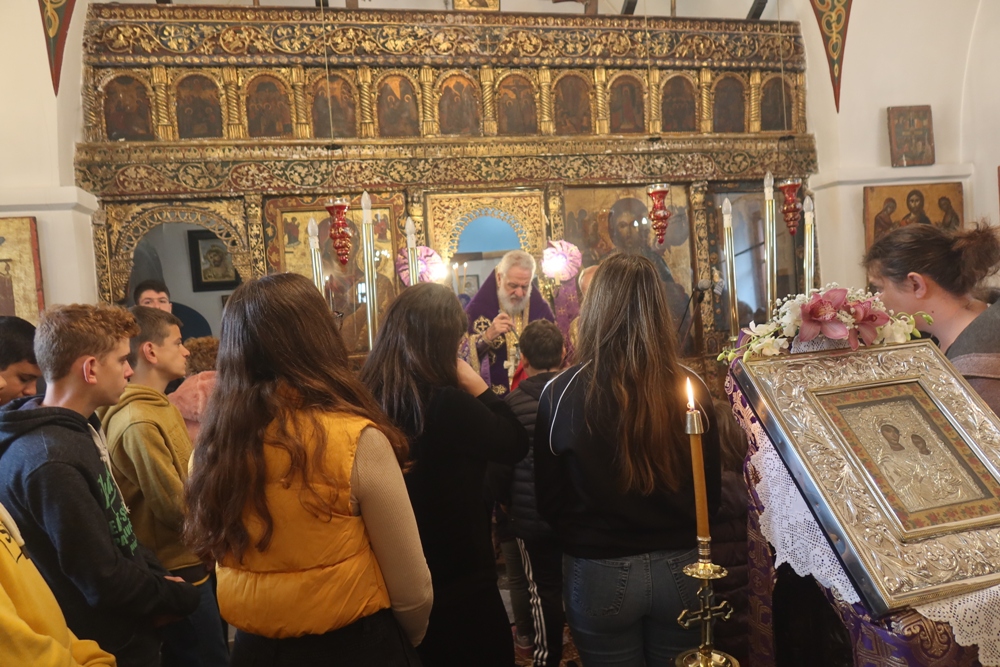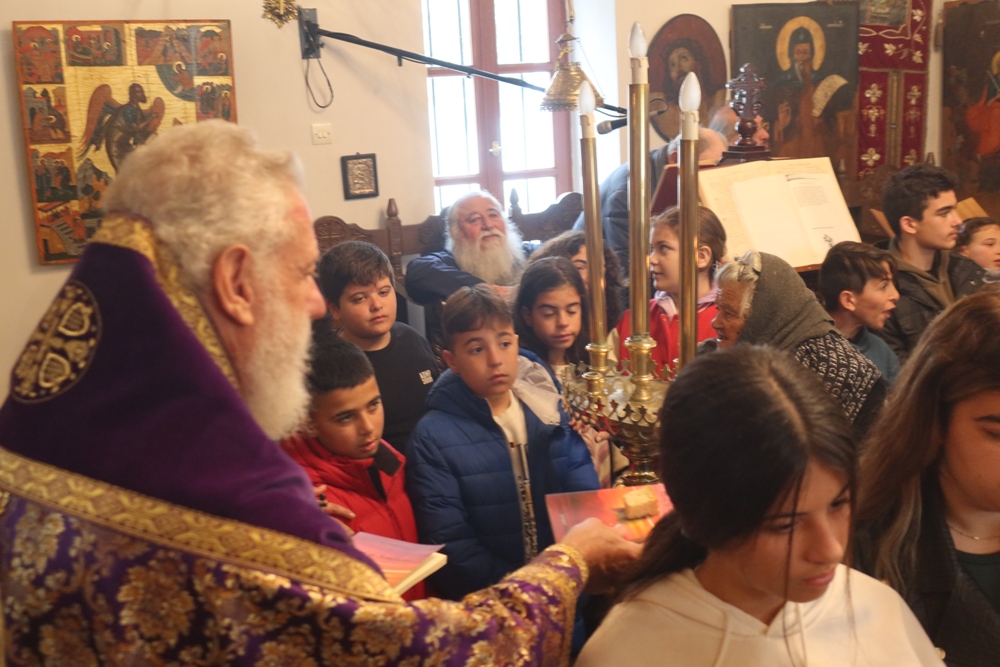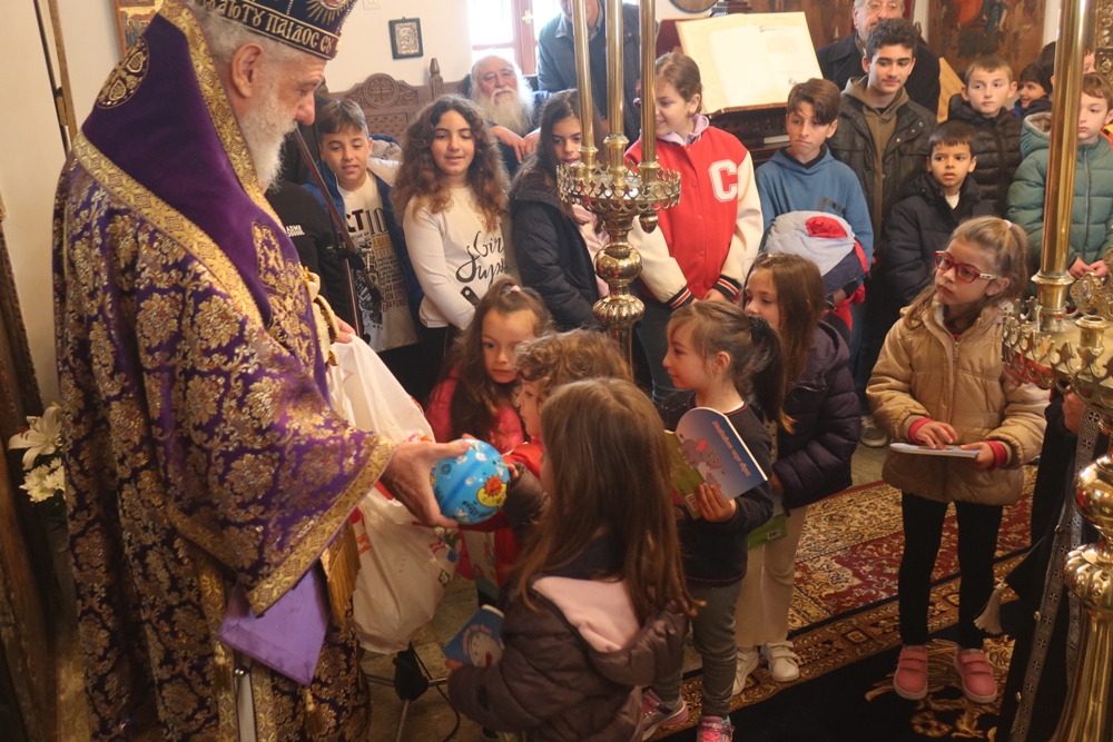 Ευχαρίστησε ενθέρμως τους Εκπαιδευτικούς και ιδιαιτέρως τους Μαθητές για την με τάξη και κατάνυξη συμμετοχή τους στην Ιερά Ακολουθία, προς τους οποίους απηύθυνε πατρικές νουθεσίες, διένειμε εκπαιδευτικό υλικό και, στα μικρά παιδιά, παιχνίδια, και ευχήθηκε σε όλους για την Αγία και Μεγάλη Τεσσαρακοστή.