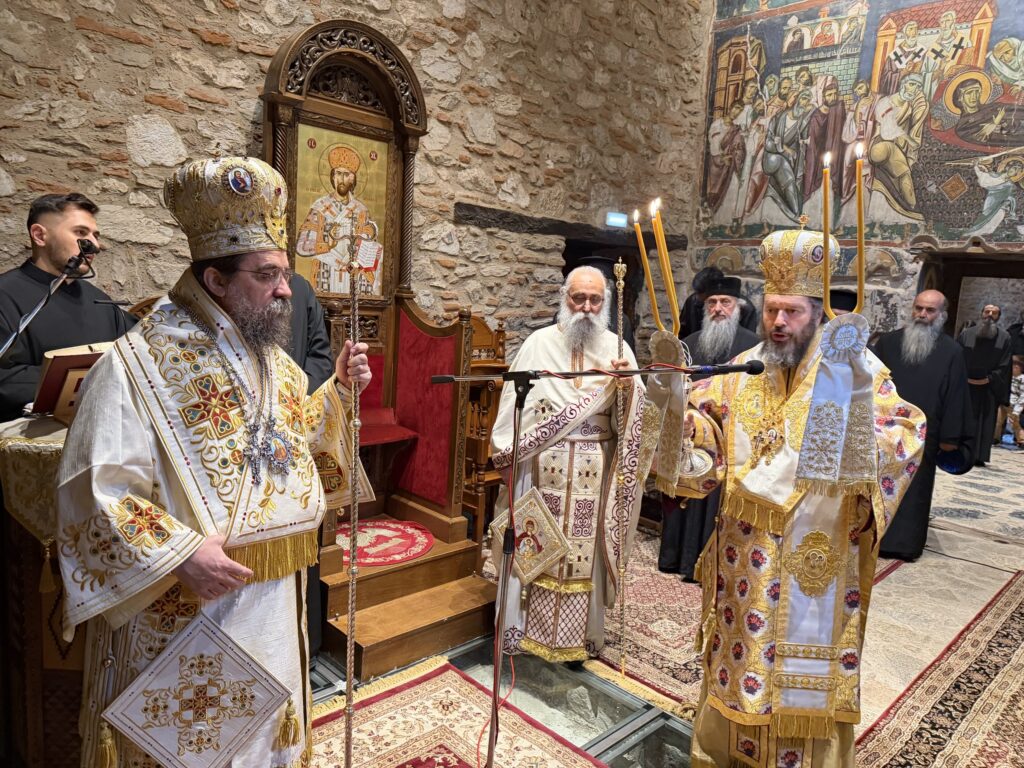 Στήν Θεία Λειτουργία συλλειτούργησαν οἱ Σεβ. Μητροπολίτες Δρυϊνουπόλεως, Πωγωνιανῆς καὶ Κονίτσης κ. Ἀλέξιος καί Καστορίας κ. Καλλίνικος, οἱ ὁποῖοι συλλειτούργησαν σὲ ἀτμόσφαιρα ἀδελφοσύνης καὶ πνευματικῆς χαρᾶς.