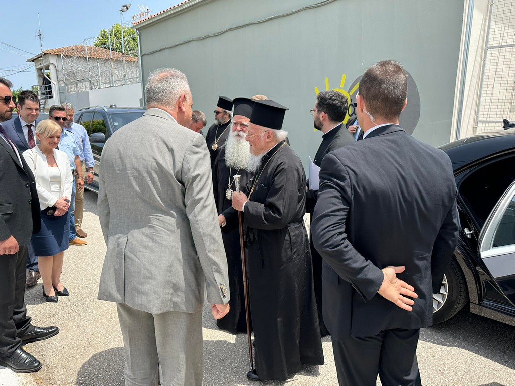 Με ιδιαίτερη χαρά και συγκίνηση υποδέχτηκαν τον Παναγιώτατο Αρχιεπίσκοπο Κωνσταντινουπόλεως και Οικουμενικό Πατριάρχη κ.κ. Βαρθλομαίο οι κρατούμενοι και οι υπηρεσιακοί παράγοντες του Ειδικού Αγροτικού Καταστήματος Κράτησης Νέων Κασσαβετείας. Ο Παναγιώτατος και η συνοδεία του αφήχθησαν στις εγκαταστάσεις της φυλακής την Κυριακή 25 Ιουνίου και ώρα 13:45.Ο Πατριάρχης επισκέφτηκε τον Ιερό Ναό του Αγίου Ελευθερίου, προσκύνησε την εικόνα του Αγίου, αποκάλυψε μια εντοιχισμένη μαρμάρινη πλάκα εις ανάμνηση της επισκέψεώς του, φύτεψε ένα ελαιόδεντρο στον περίβολο του Ναού και, στη συνέχεια, παρακολούθησε μια λιτή εκδήλωση που ετοίμασαν προς τιμήν του οι μαθητές κρατούμενοι με τους δασκάλους τους.Η επιθυμία του Παναγιωτάτου να επισκεφθεί μια φυλακή της περιοχής μας προσέφερε μεγάλη χαρά και ικανοποίηση σε όλους τους ανθρώπους των χώρων εγκλεισμού. Αυτή την αλήθεια υπογράμμισαν και οι τρεις ομιλητές. Επίσης, υπογράμμισαν και εξέφρασαν την ευγνωμοσύνη τους προς την Τοπική μας Εκκλησία για την ουσιαστική προσφορά της στον τομέα στήριξης των απόρων φυλακισμένων, αλλά και των κοινωνικών υπηρεσιών της φυλακής.Ο κ. Στέφανος Ραφτόπουλος, ο Διευθυντής του Ε.Α.Κ.Κ.Ν. Κασσαβετείας. αφού καλωσόρισε τον υψηλό καλεσμένο, υπογράμμισε την πολύτιμη βοήθεια της τοπικής μας Εκκλησίας λέγοντας: “Για όλους μας, μόνιμη πηγή ἐμπρακτης και άμεσης στήριξης είναι η τοπική μας Εκκλησία, η οποία με τις ευχές του καλού μας Ποιμενάρχη Σεβασμιωτάτου κ. κ. Ιγνατίου, ευρίσκεται πάντοτε δίπλα μας. Κοντά μας διακονεί ένας σεβαστός ιερέας, ένας πραγματικός πατέρας, ο π. Χρήστος Μπούντης, ο οποίος μας χορηγεί τη χάρη του Θεού και μας στηρίζει ως πνευματικός συμπαραστάτης μας. Επίσης, έχουμε και μία άλλη μεγάλη ευλογία για την οποία ευχαριστούμε το Θεό και τον Μητροπολίτη μας. Εδώ και 28 ολόκληρα χρόνια διακονεί και στο χώρο μας ο Σύλλογος Συμπαραστάσεως Κρατουμένων Βόλου ο «Εσταυρωμένος», ο οποίος, με τους δεκάδες εθελοντές και τις κοινωνικές δομές του, που λειτουργεί στο Βόλο, μας ενισχύει ποικιλοτρόπως προσφέροντάς μας τακτικότατα: οικονομική, ηθική, πνευματική και υλική βοήθεια. Πρόκειται για μια αστείρευτη πηγή από την οποία αντλούμε πολλά και αναγκαία…” Ο π. Θεόδωρος Μπατάκας, ο Πρόεδρος του “Ε”, στην προσφώνησή του τόνισε και τα εξής: “Δοξάζουμε και ευχαριστούμε τον Τριαδικό Θεό για την τιμή και την χαρά που μας επεφύλαξε σήμερα. Υποδεχτήκαμε με συγκίνηση τον Παναγιώτατο Οικουμενικός μας πατριάρχη κ.κ. Βαρθολομαίο και την ευλογημένη συνοδεία του σε τούτον τον χώρο της διακονίας μας, στον οποίο περισσεύει ο πόνος, η θλίψη και η ανέχεια. Σ’ έναν τόπο, όπου κρατούνται δεκάδες συνάνθρωποί μας, στα πρόσωπα των οποίων καλούμαστε να διακονήσουμε ποικιλοτρόπως τον Ίδιο τον Χριστό, όπως Εκείνος μας δίδαξε. Αντηχούν συνεχώς στ’ αυτιά μας τα λόγια Του: «εν φυλακή ήμην και ήλθετε πρός με» (Ματθ. 25, 36). Η επιθυμία σας, Παναγιώτατε, να επισκεφθείτε μια φυλακή της περιοχής μας, αποτελεί σημαντικό γεγονός και είναι όντως ένα μεγάλο δώρο, το οποίο θα ενεργήσει θετικά και θα ενισχύσει τις καρδιές όλων μας: Των φυλακισμένων, των εκατοντάδων εργαζομένων στα Ειδικά καταστήματα κράτησης, αλλά και των διακονούντων εθελοντών της Εκκλησίας μας, κληρικών και λαϊκών, στους χώρους εγκλεισμού κάποιων συνανθρώπων μας….” Μετά την προσφώνηση του π. Θεοδώρου, η κ. Κερασία Παπαγεωργίου-Γκαβανού