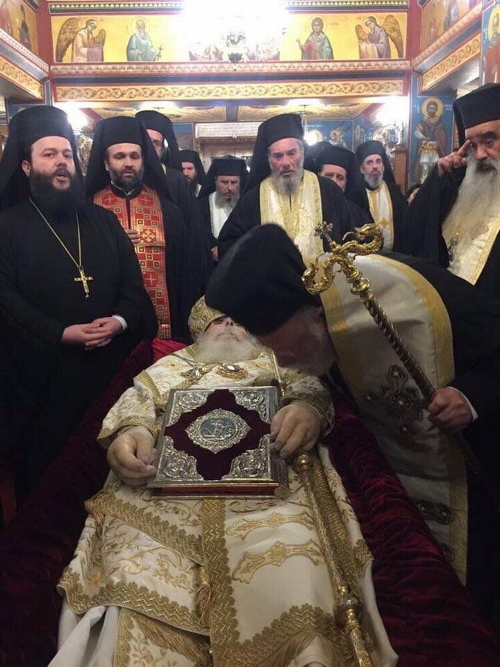 Πλήθος πιστών συρρέει αυτή την ώρα στον Ιερό Μητροπολιτικό Ναό Αγ. Αναργύρων Νέας Ιωνίας για να προσκυνήσουν το σκήνωμα του μακαριστού ιεράρχου.