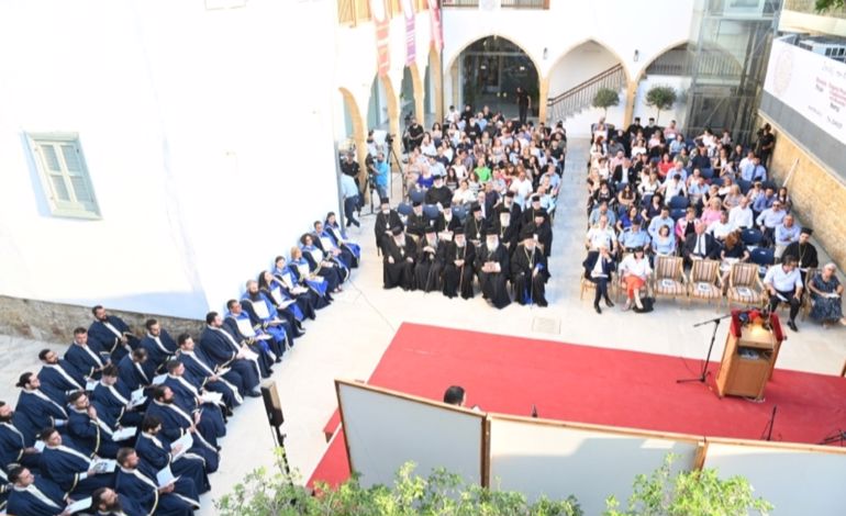 Η τελετή ολοκληρώθηκε με την απονομή των πτυχίων από τον Μακαριώτατο.
