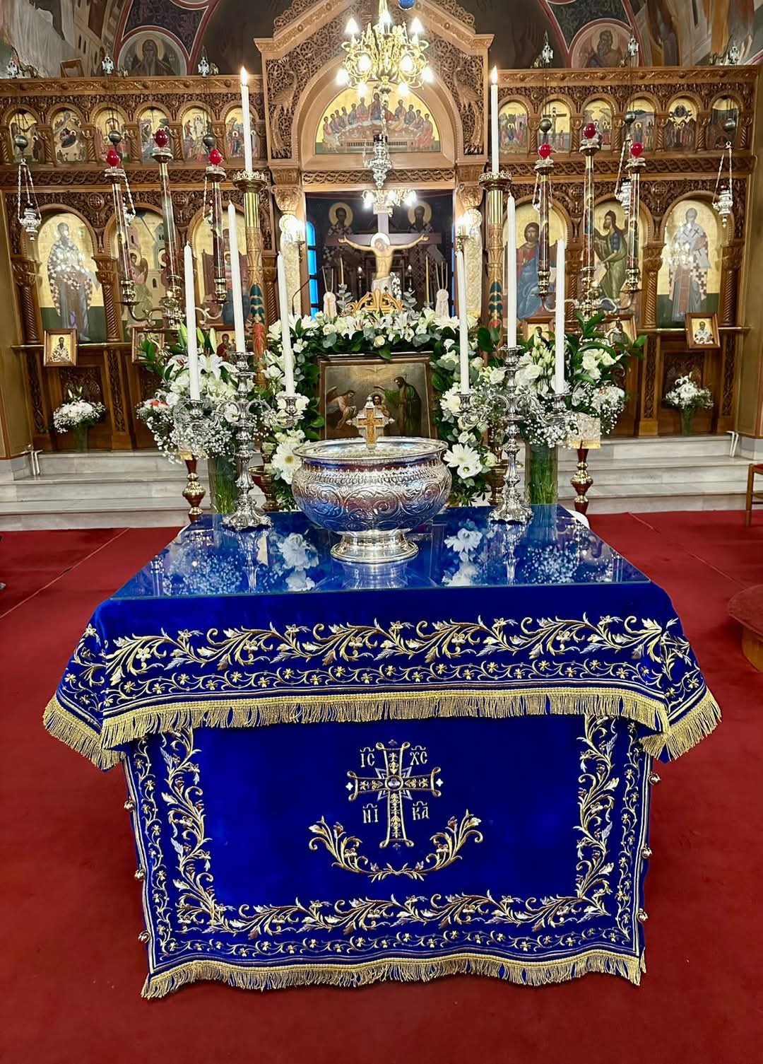 Επίκεντρο του εορτασμού της λαμπράς ημέρας της Θείας Επιφανείας (που αποτελεί και το αποκορύφωμα των εορτών του Δωδεκαημέρου) στη Σαντορίνη ήταν ο Ιερός Ενοριακός Ναός του Ευαγγελισμού της Θεοτόκου στο Εμπορείο, όπου ο Σεβασμιώτατος Μητροπολίτης Θήρας, Αμοργού & Νήσων κ. Αμφιλόχιος χοροστάτησε του Όρθρου, και, πλαισιούμενος από τον Γενικό Αρχιερατικό Επίτροπο της Ιεράς Μητροπόλεως αιδεσιμολ. πρωτοπρ. π. Νικόλαο Σιγάλα, τον αιδεσιμ. πρεσβ. π. Κυριάκο Καραμολέγκο και τους ιερολ. ιεροδιακόνους π. Νεκτάριο Σάκκα και π. Ανδρέα Τσένκο, ετέλεσε τη Θεία Λειτουργία και την ιερά ακολουθία του Μεγάλου Αγιασμού.