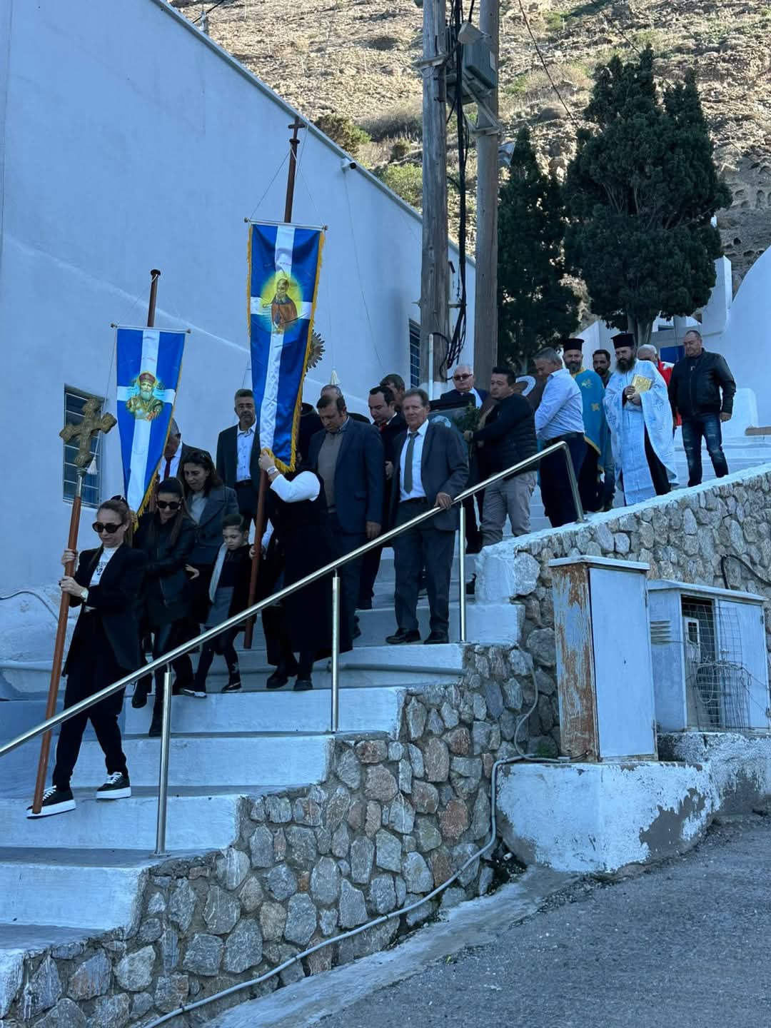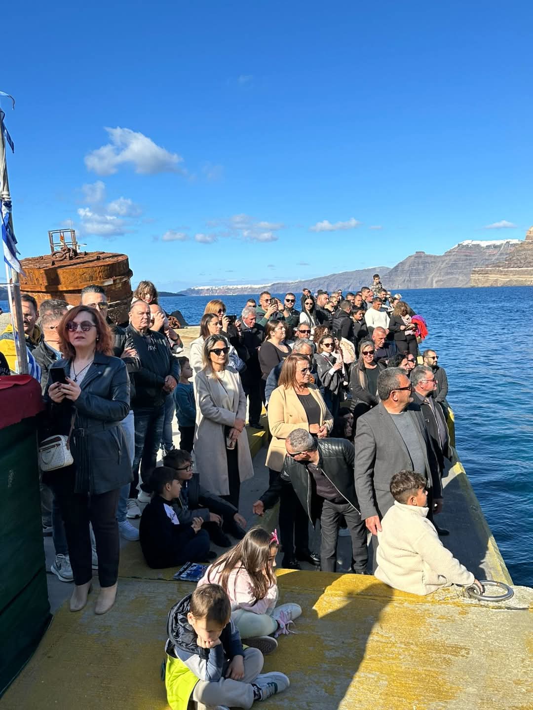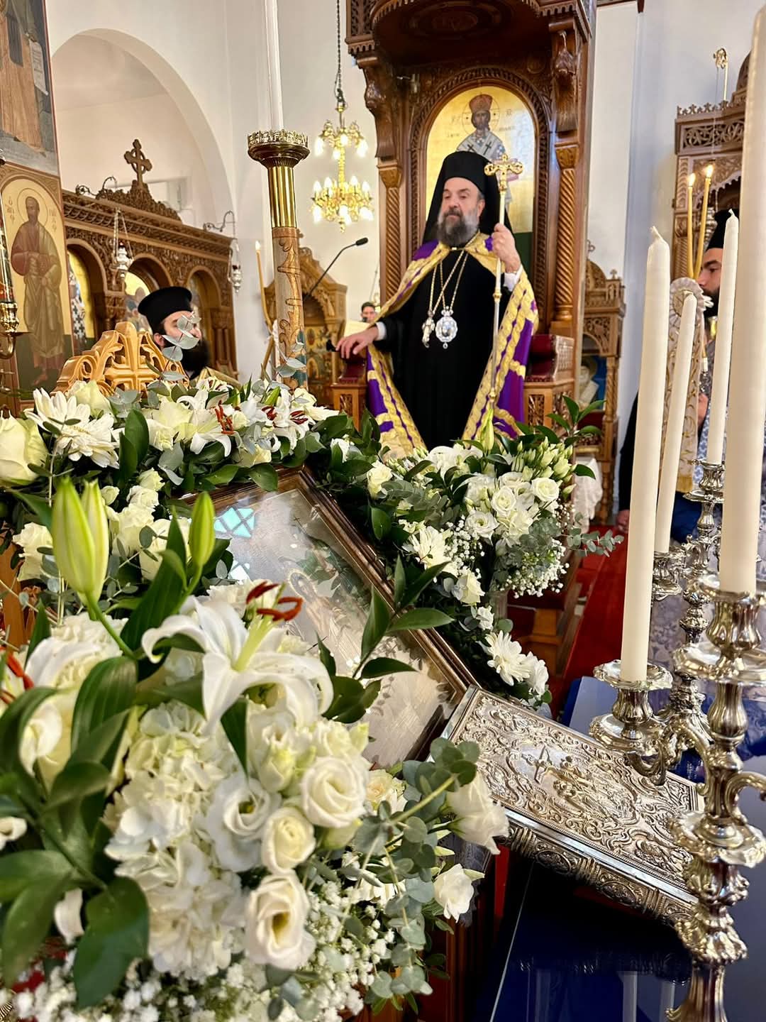 Πλήθος ευσεβούς Λαού κατέκλυσε τον Ιερό Ναό μεταξύ των οποίων εκπρόσωποι των Αρχών και Φορέων της νήσου ως ο Δήμαρχος Θήρας κ. Νικόλαος Ζώρζος, η Έπαρχος Θήρας κ. Ιουλία Καραμολέγκου, ο Χωρικός Αντιπεριφερειάρχης Υγείας κ. Χαράλαμπος Δαρζέντας, η Πρόεδρος του Δημοτικού Συμβουλίου, Αντιδήμαρχοι, Δημοτικοί και Τοπικοί Σύμβουλοι.
