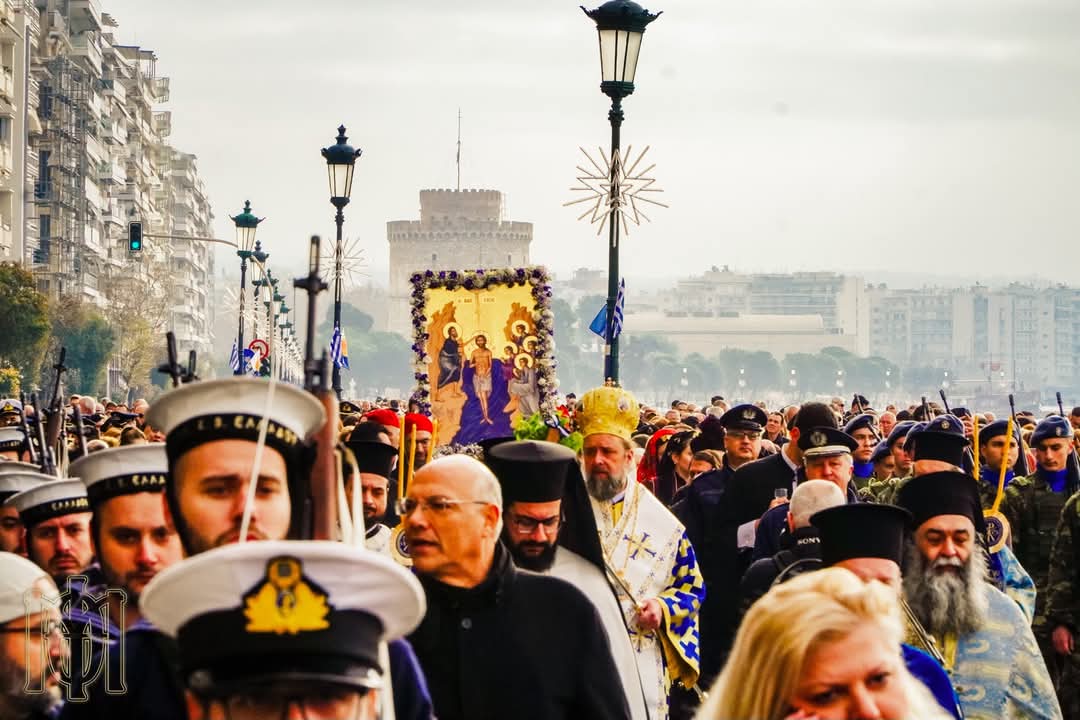 Με ιδιαίτερη λαμπρότητα, αρμόζουσα στην μεγάλη αυτή Ημέρα, εορτάσθηκε η μεγάλη Εορτή των Θεοφανείων στη Θεσσαλονίκη, την Δευτέρα 6 Ιανουαρίου 2025.