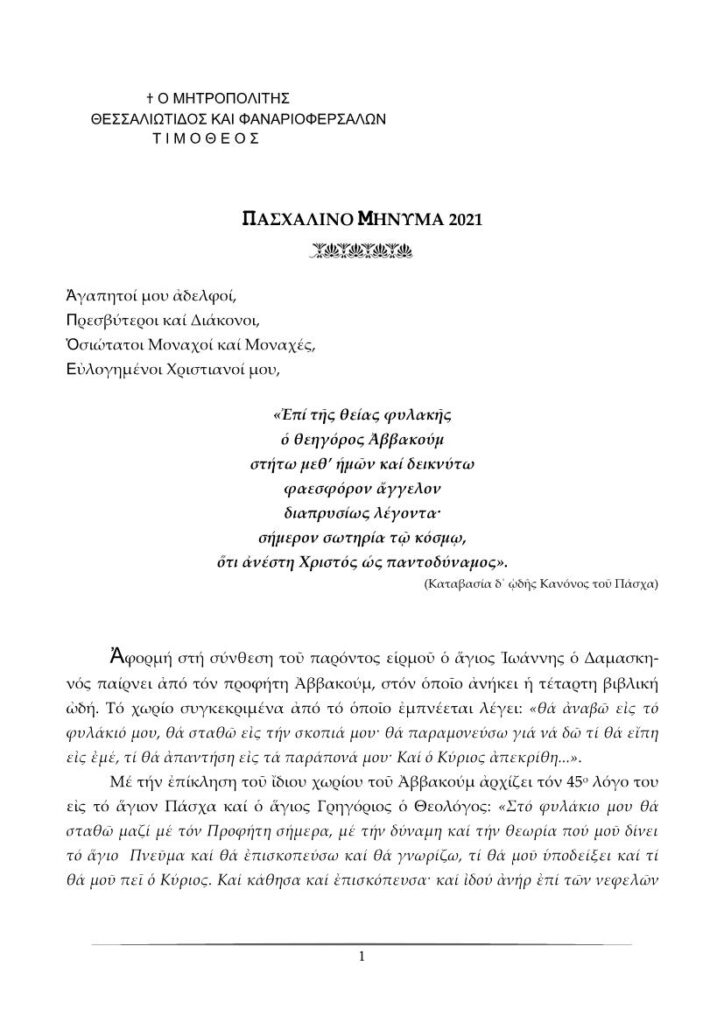 Εγκύκλιος Σεβ. Μητροπολίτου Μάνης κ. Χρυσοστόμου Γ’ περί της χαράς των χριστιανών