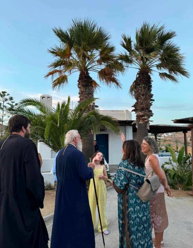 Την Τριτη, 3 Σεπτεμβρίου, ο Σεβασμιώτατος κ. Δωρόθεος Β’ τέλεσε τα Θυρανοίξια Ιερού Παρεκκλησίου, αφιερωμένου στον Άγιο Γεώργιο, στην περιοχή «Καλαφάτης» Μυκόνου, τους κτήτορες του οποίου συνεχάρη για την φιλάγιο αυτή πρωτοβουλία τους και τους ευχήθηκε ο Άγιος Γεώργιος να ευλογεί την οικογένειά τους και τις. δραστηριότητές τους.