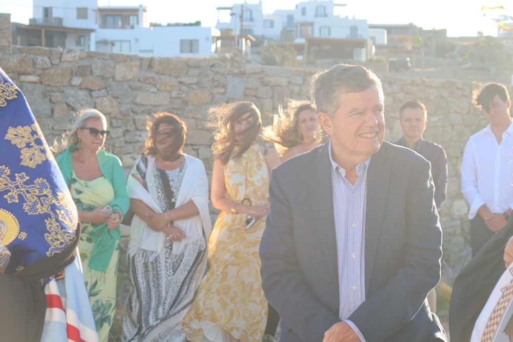 Στην Ακολουθία παρέστησαν ο Ηγούμενος της Ιεράς Μονής Εσφιγμένου Αγίου Όρους Αρχιμ. Βαρθολομαίος, ο Αρχιμ. Θεωνάς από το Κελλί του Αγίου Νικολάου Αγίου Όρους και οι Αγιορείτες Αρχιμ. Απόστολος και Γαβριήλ, ο οποίος και συνέθεσε ειδική για την περίσταση εσπερινή Ακολουθία των Θυρανοιξίων, ο Ηγούμενος της Ιεράς Μονής Τουρλιανής, Αρχιμ. Αλέξιος, ο Αρχιερατικός Επίτροπος Μυκόνου, Πρωτοπρ. Πέτρος Μαραγκός, ο Διοικητής του Αγίου Όρους και Μέγας Ευεργέτης της Ιεράς Μητροπόλεως κ. Αθανάσιος Μαρτίνος μετά της ομοζυγου του Μαρίνας και πολλοί Επιστήμονες και εκλεκτοί προσκεκλημένοι.