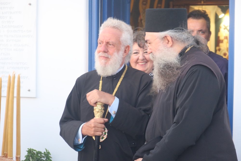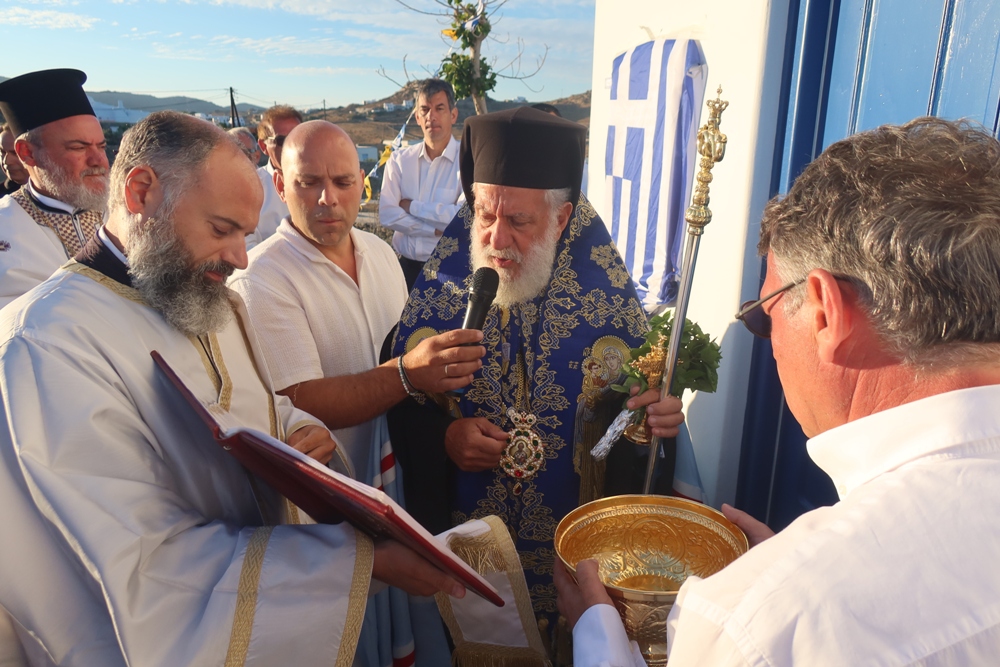 Ο Σεβασμιώτατος κ. Δωρόθεος Β’ τέλεσε απόψε τα Θυρανοίξια Ιερού Παρεκκλησίου των Αγίων Σπυρίδωνος και Νικοδήμου του Αγιορείτου, το οποίο ανήγειρε στην περιοχή «Καλαφάτης» Μυκόνου η φιλογενής και φιλευσεβής οικογένεια του διακεκριμένου Ιατρού-Καρδιολόγου κ. Παπαϊωάννου.